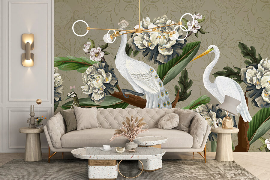 Imaginați-vă genul de eleganță relaxată pe care o aduce acest mural – pereții dvs. spunând o poveste de vis despre un paradis botanic liniștit. Este ideal pentru cineva care iubește natura, dar apreciază și o notă de rafinament. Păunii și florile sunt atât de detaliate, încât ai putea avea impresia că te plimbi printr-o grădină exotică. Perfect pentru a crea acel factor de uimire atunci când prietenii vizitează – garantat va stârni conversația!