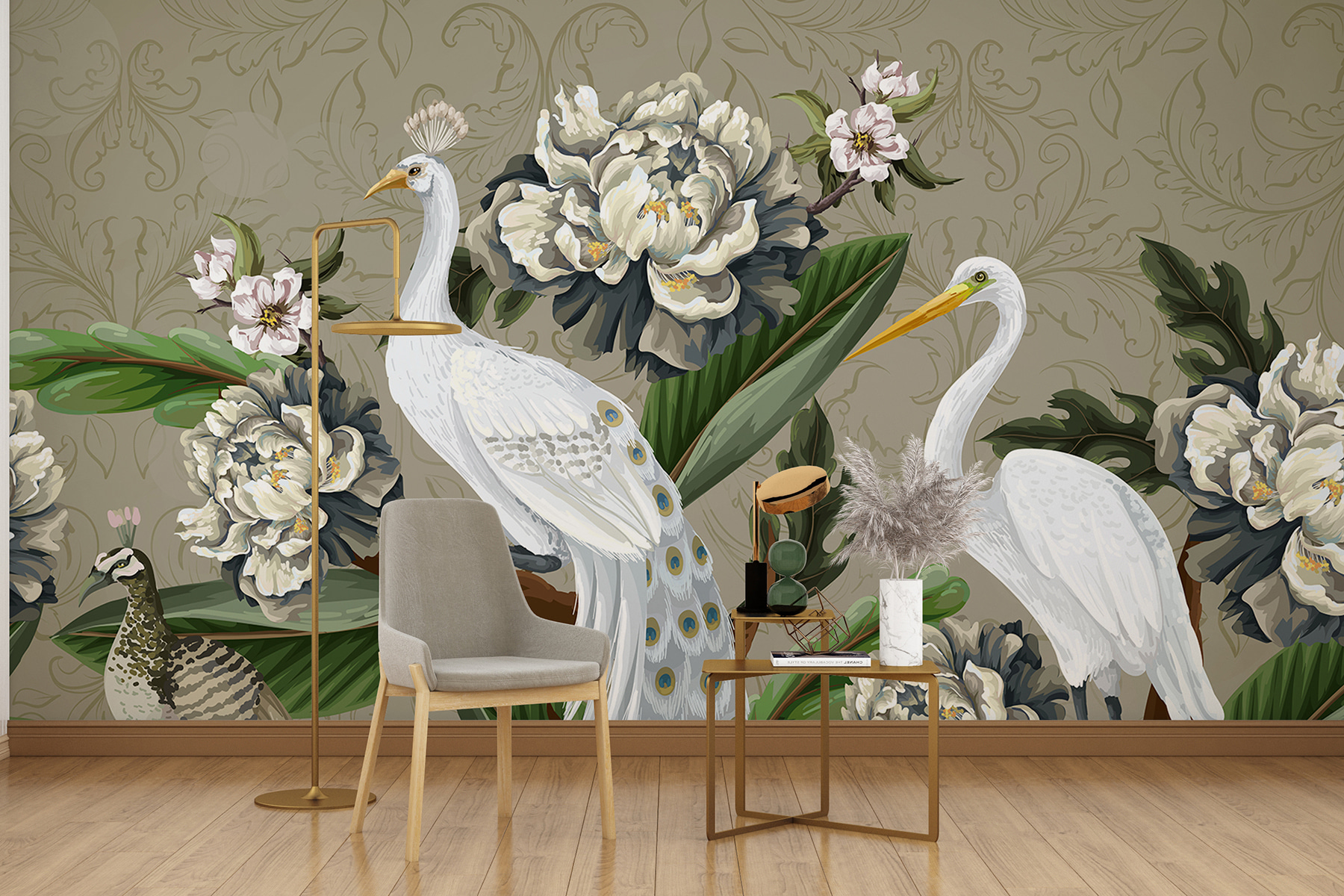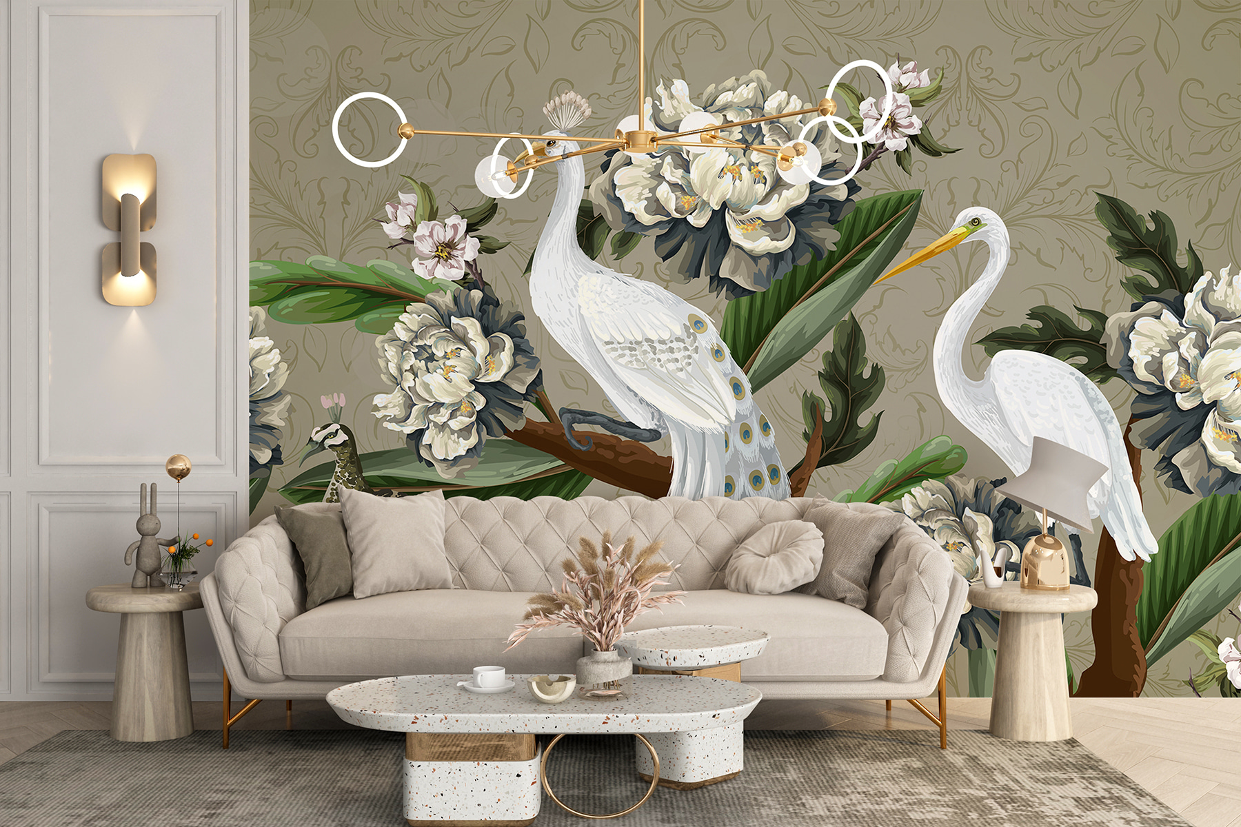 Imaginați-vă genul de eleganță relaxată pe care o aduce acest mural – pereții dvs. spunând o poveste de vis despre un paradis botanic liniștit. Este ideal pentru cineva care iubește natura, dar apreciază și o notă de rafinament. Păunii și florile sunt atât de detaliate, încât ai putea avea impresia că te plimbi printr-o grădină exotică. Perfect pentru a crea acel factor de uimire atunci când prietenii vizitează – garantat va stârni conversația!