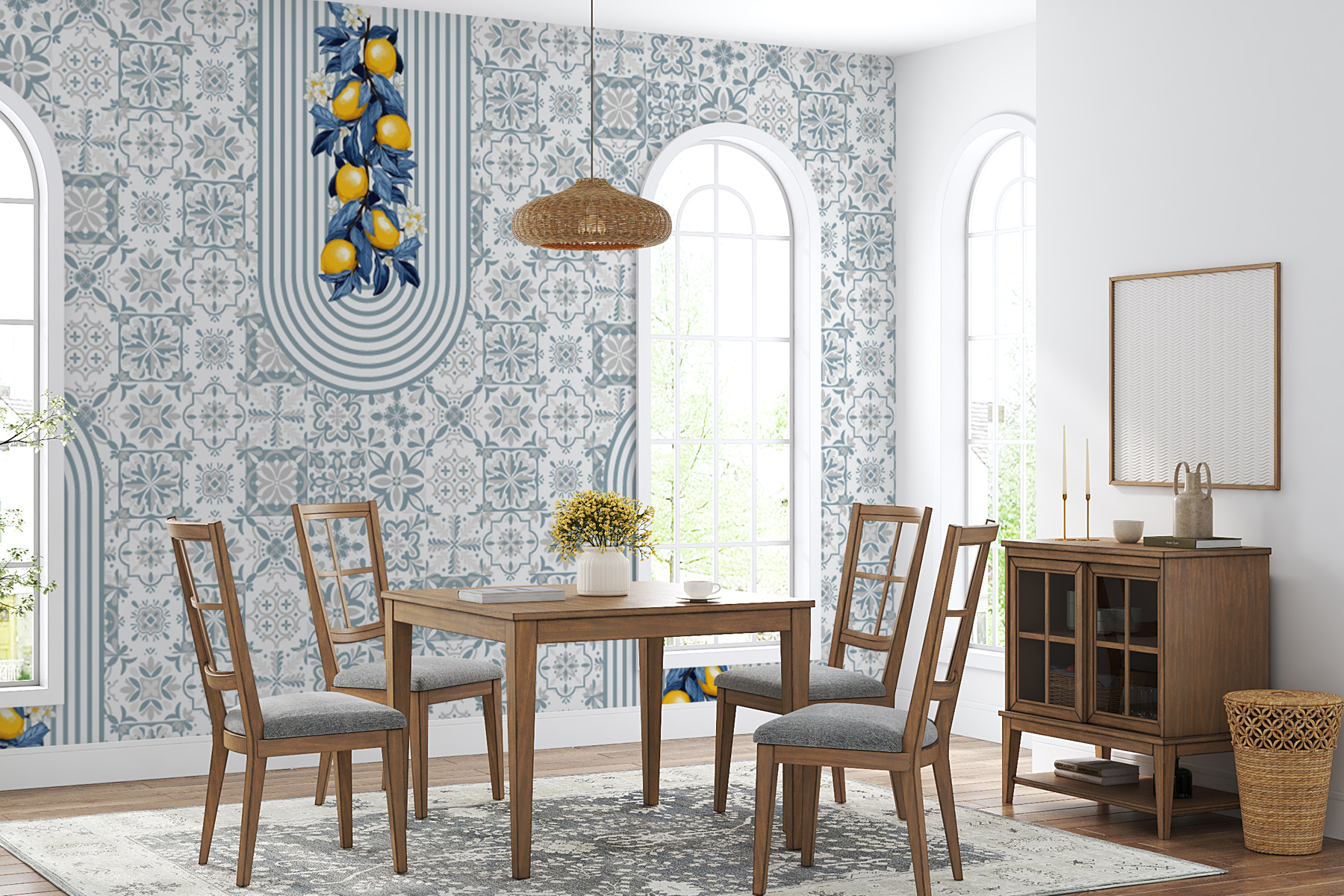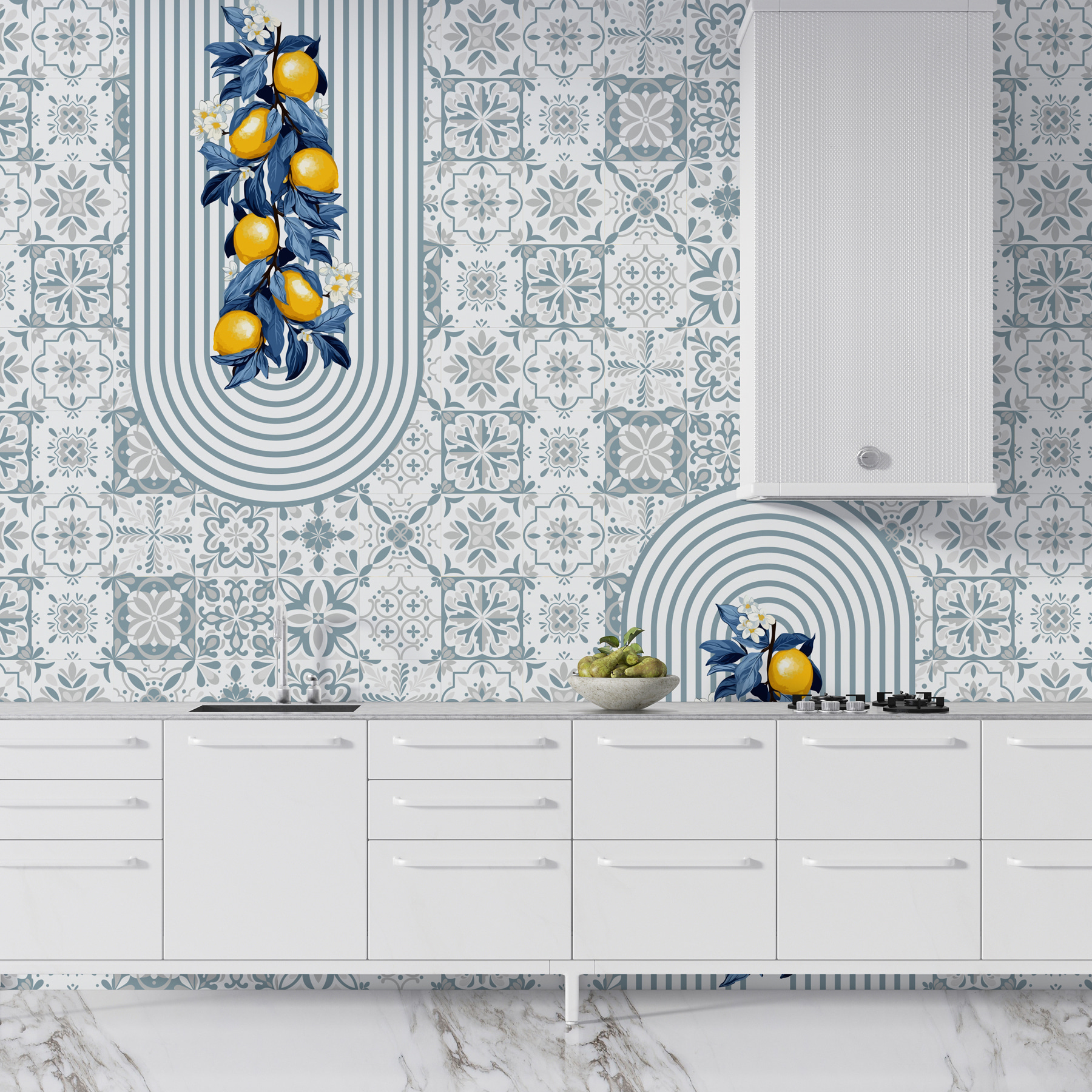 Ați visat vreodată să fugiți într-o bucătărie mediteraneană însorită? Acest “Fototapet w08034” ar putea fi mica ta evadare. Gândiți-vă la lămâi proaspete, albastru vibrant și un model jucăuș care este atât modern, cât și vintage nostalgic. Este ca și cum v-ați trezi în fiecare dimineață în fața celui mai fericit mozaic din lume – vesel, răcoritor și o ușoară trimitere la vacanțele de vară la mare. Perfect pentru orice cameră care are nevoie de un strop de căldură și farmec. Imaginează-ți oaspeții care se minunează de peretele tău, întrebând: “De unde ai această încântare?” O piesă care transformă spațiile goale în conversații.