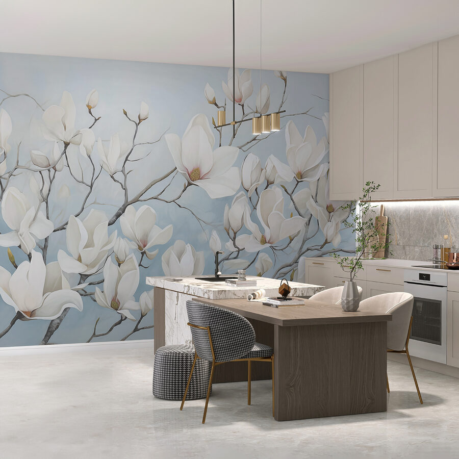 “Fototapet w08125” este ca și cum ai avea o bucată de primăvară eternă chiar în spațiul tău de locuit. Imaginați-vă că vă treziți în fiecare zi la acel vârtej visător de magnolii – acele petale delicate în alburi moi și rozuri cremoase pe un fundal senin. Este aproape ca și cum ați păși într-o grădină înflorită, unde fiecare ramură și floare invită la calm și la o notă de fantezie.