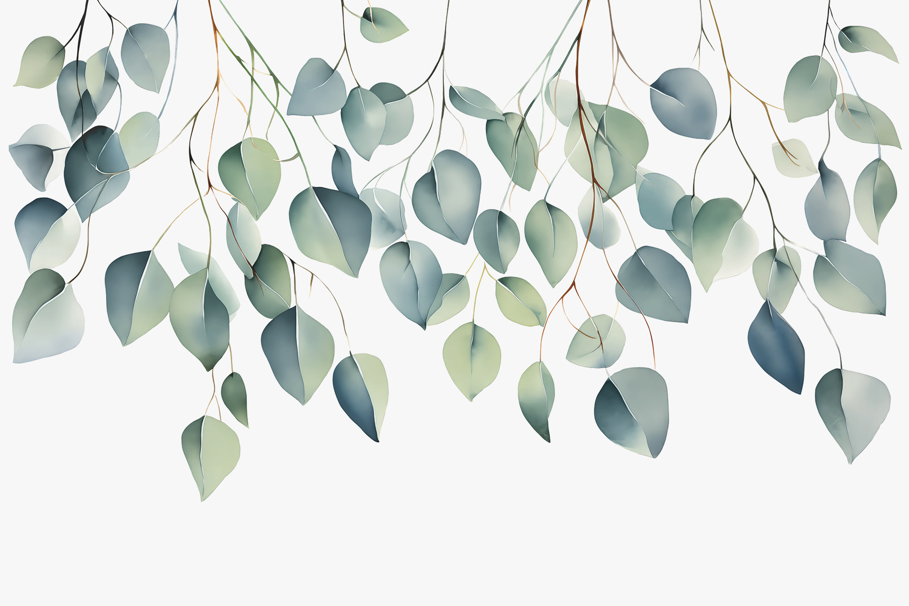 Fototapet Frunze de eucalipt în cascadă senină Fototapet Frunze de eucalipt în cascadă senină