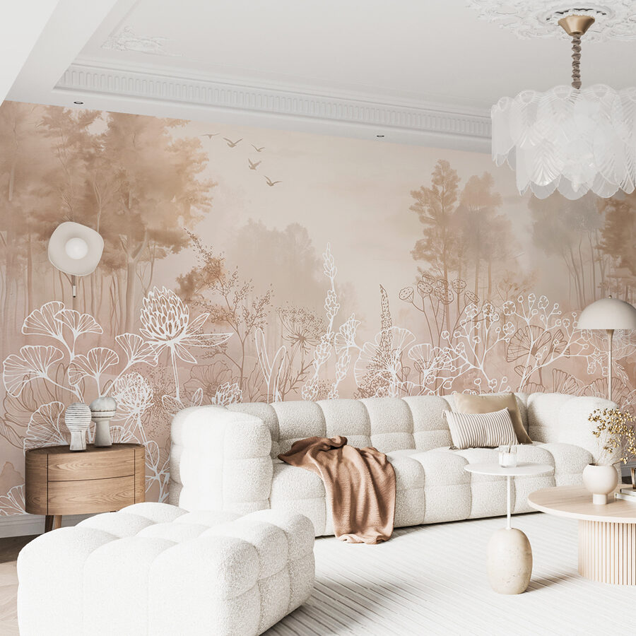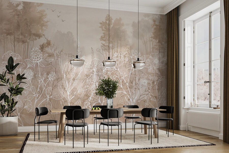 Imaginați-vă un spațiu care seamănă mai mult cu o grădină senină decât cu o cameră. Această pictură murală, “Desen de plante și copaci”, aduce fericirea din curtea din spate chiar în interior. Cu contururi albe delicate de plante și tonuri moi, pământii, creează o vibrație liniștitoare care șoptește relaxare. Imaginați-vă că vă începeți ziua sorbind cafea în timp ce vă bucurați de acest vis botanic! Este ca și cum ai avea o bucată de natură pe perete – perfectă pentru a inspira creativitatea sau pur și simplu pentru a te relaxa după o zi plină. Fiecare privire vă reamintește să respirați, să vă relaxați și poate chiar să planificați acea excursie despre care tot vorbeați. Lasă-ți pereții să spună o poveste de liniște și farmec, transformându-ți casa într-o mini-oază. Cine nu și-ar dori asta?
