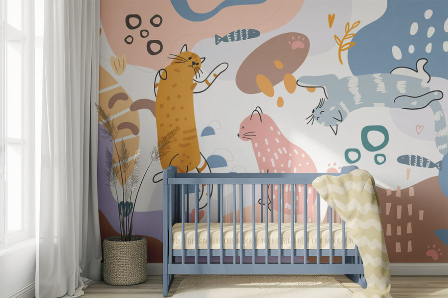 Transformați orice spațiu cu această pictură murală veselă care prezintă o trupă plină de viață de pisici pe un fundal colorat. Imaginați-vă o după-amiază leneșă în care aceste blănițe adorabile aduc un zâmbet instantaneu oricui trece pe lângă ele. Designul jucăuș adaugă un strop de fantezie, perfect pentru un colț confortabil sau chiar o cameră de zi luminoasă. Pisici care se relaxează, se întind și poate plănuiesc următoarea lor pauză de gustare – cine nu ar râde la asta? Cu un echilibru încântător al culorilor, creează o atmosferă caldă, primitoare. Este ca și cum ai avea o îmbrățișare moale de felină pe perete!