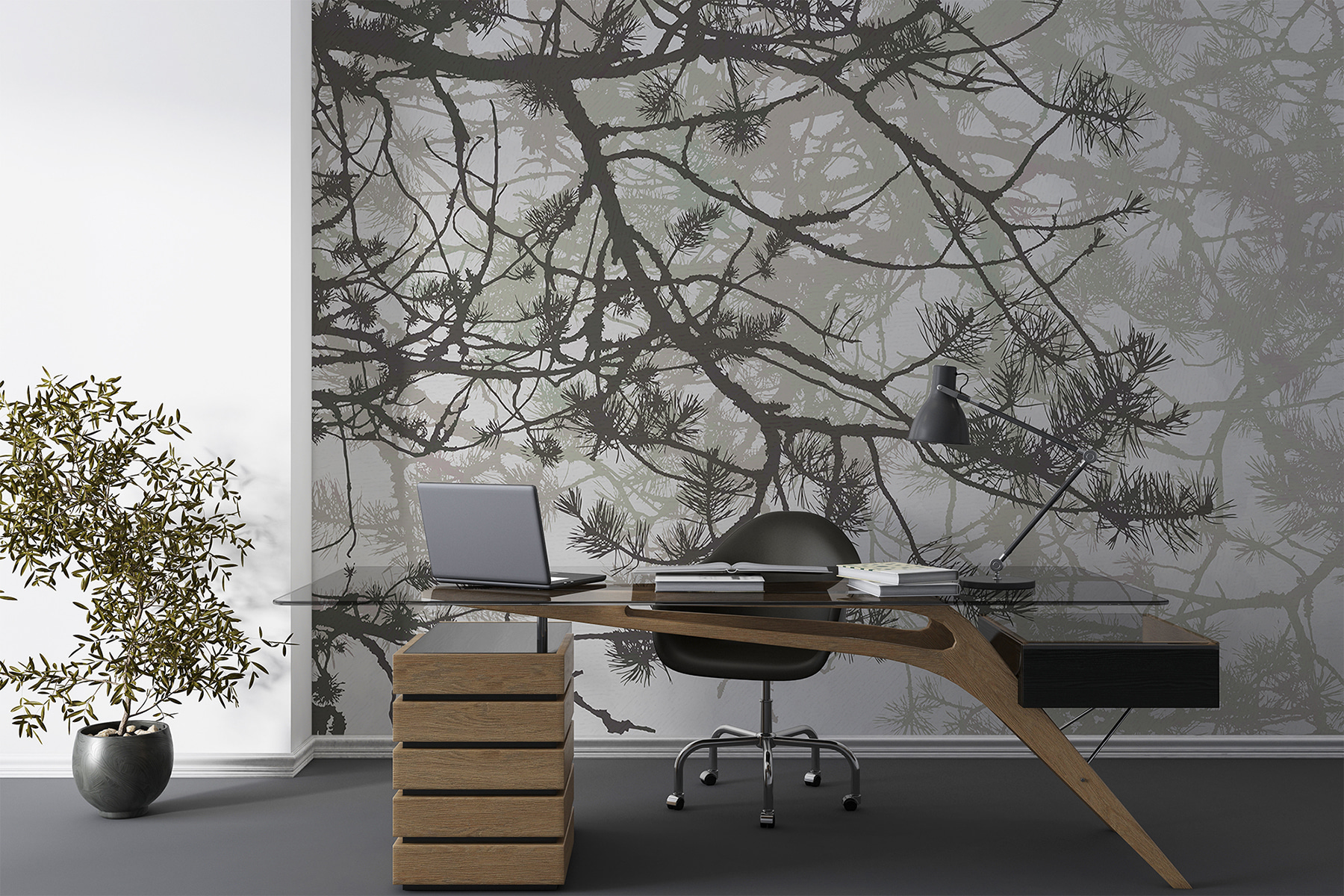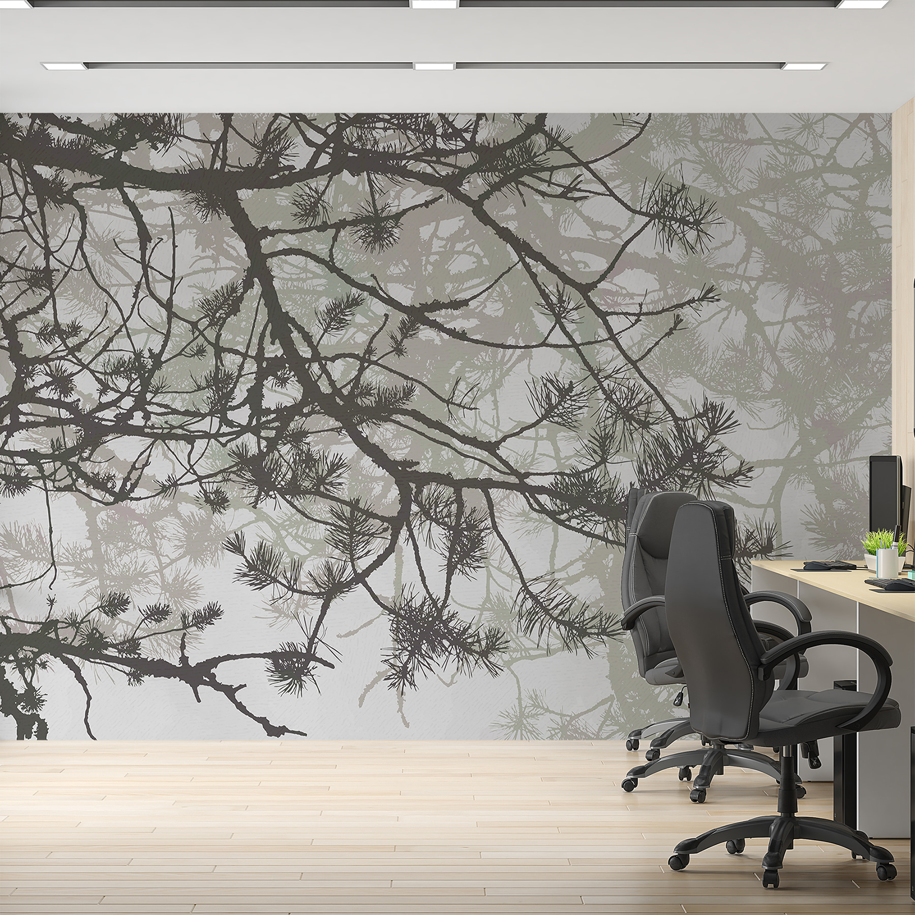 Transformați-vă spațiul într-un refugiu senin în pădure cu această pictură murală încântătoare cu ramuri de copac împodobite cu ace delicate. Imaginați-vă că pășiți într-o cabană confortabilă în fiecare zi, chiar dacă vă aflați doar în camera de zi. Jocul blând de umbre și lumină oferă o atmosferă liniștitoare, perfectă pentru relaxare sau pentru a visa cu ochii deschiși la următoarea drumeție. Este aproape ca și cum ai aduce exteriorul înăuntru, fără insecte! În plus, este o modalitate excelentă de a stârni conversații despre natură, copaci și poate chiar despre acea excursie cu cortul care a mers prost. Îmbrățișați senzația de aer liber și lăsați peretele dvs. să spună o poveste.