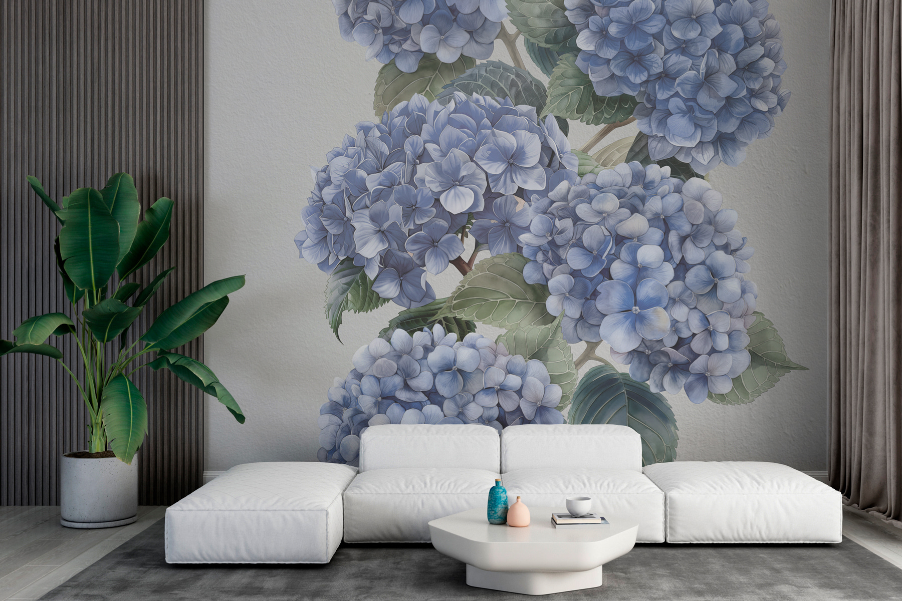 Transformați orice cameră într-o oază de grădină senină cu această pictură murală uimitoare cu hortensii albastre în floare delicată. Imaginați-vă că intrați într-un spațiu care vă ridică instantaneu starea de spirit, unde fiecare petală pare să vă șoptească secretele unei zile de vară. Este ca și cum ai avea o bucățică de natură chiar pe pereții tăi. Nuanțele suave și detaliile complicate invită la un calm blând, perfect pentru colțuri confortabile sau locuri de întâlnire pline de viață. Prietenii se vor minuna de alegerea dvs. unică de decor și, cine știe, s-ar putea să inspirați pe cineva să se apuce de grădinărit – sau cel puțin să aprecieze frumusețea florilor un pic mai mult! Perfectă pentru iubitorii de natură și artă deopotrivă, această pictură murală adaugă o notă răcoritoare oricărui interior.