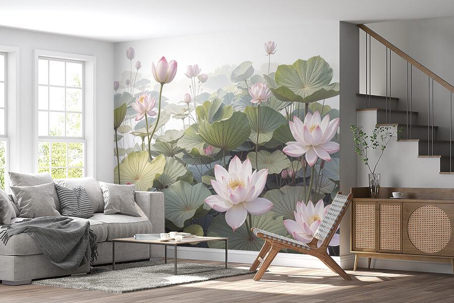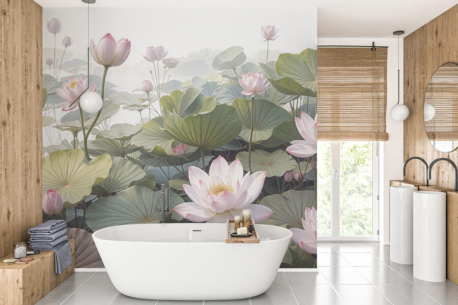 Ai visat vreodată să ai propria ta grădină Zen? Scufundați-vă în liniște cu “Fototapet w08221”! Perfectă pentru cei care iubesc natura și florile, această pictură murală vă învăluie camera într-o oază liniștitoare de lotuși înfloriți. Imaginați-vă că vă treziți și vă simțiți ca într-un refugiu liniștit – păsările ciripesc, briza moale suflă.