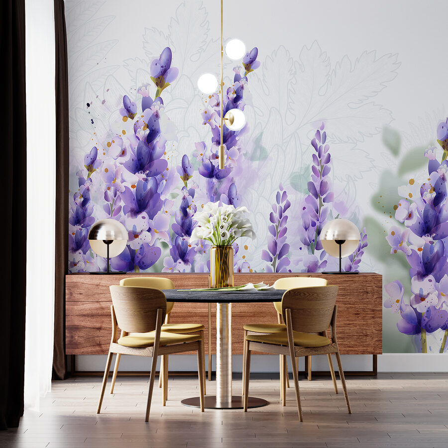 Iată ceva care va înveseli orice cameră – o pictură murală plină de lavanda minunată! “Fototapet w08231” este ca și cum ai păși într-o grădină de vis în acuarelă, chiar în casa ta. Imaginați-vă că adormiți cu aceste purpuriu și verde blând dansând pe pereții dvs.