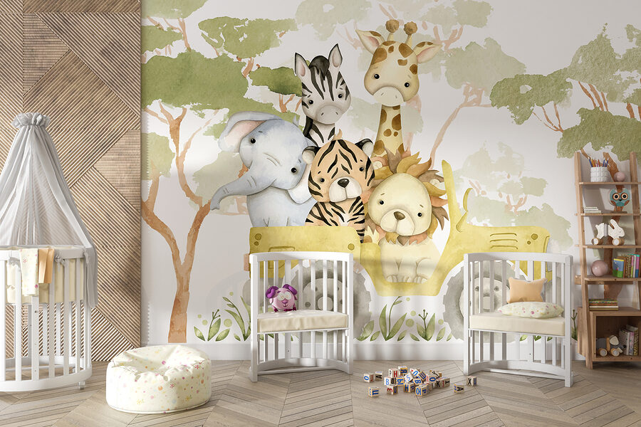 Imaginați-vă asta: intrați într-o cameră și aceste creaturi drăguțe vă întâmpină cu expresiile lor curioase. Este ca și cum te-ar invita să te alături micii lor escapade! Stilul acuarelă oferă o senzație blândă, liniștitoare – este aproape ca o scenă de poveste care se desfășoară chiar în casa ta. Așadar, fie că transformați camera unui copil, fie că doriți doar o notă de fantezie în viața dumneavoastră, această pictură murală vă satisface.