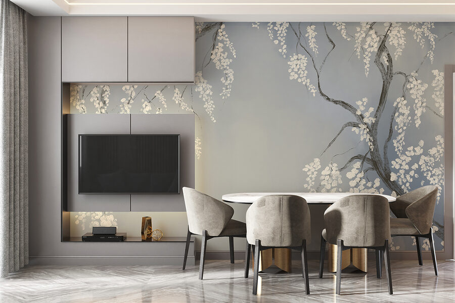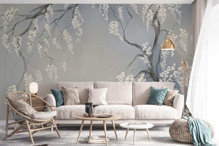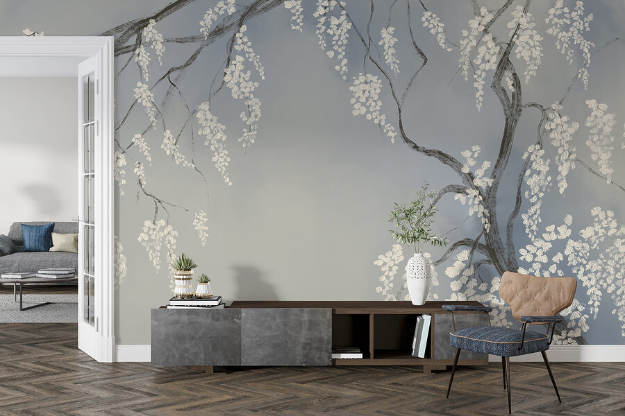 Transformați orice cameră cu această pictură murală uimitoare cu ramuri delicate de copac împodobite cu flori albe. Imaginați-vă că pășiți într-o grădină japoneză senină fără să ieșiți vreodată din casă. Contrastul blând dintre albastrul moale și albul proaspăt poate lumina chiar și cele mai mohorâte zile. Imaginați-vă sorbind ceai sau savurând o carte bună în timp ce vă bucurați de această atmosferă liniștită. Este ca și cum ai avea o gură de aer proaspăt chiar pe peretele tău. Prietenii s-ar putea să vă întrebe dacă ați făcut o călătorie în Japonia! Perfectă pentru colțuri confortabile sau pentru a reîmprospăta un spațiu mai mare, această pictură murală adaugă farmec și seninătate.