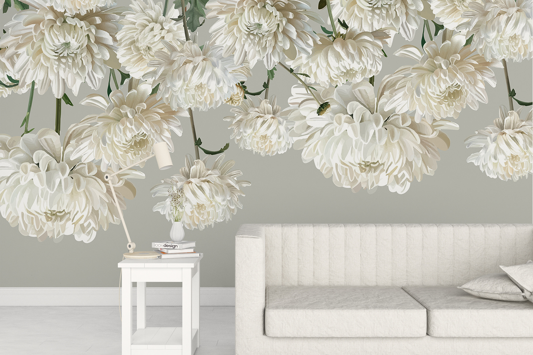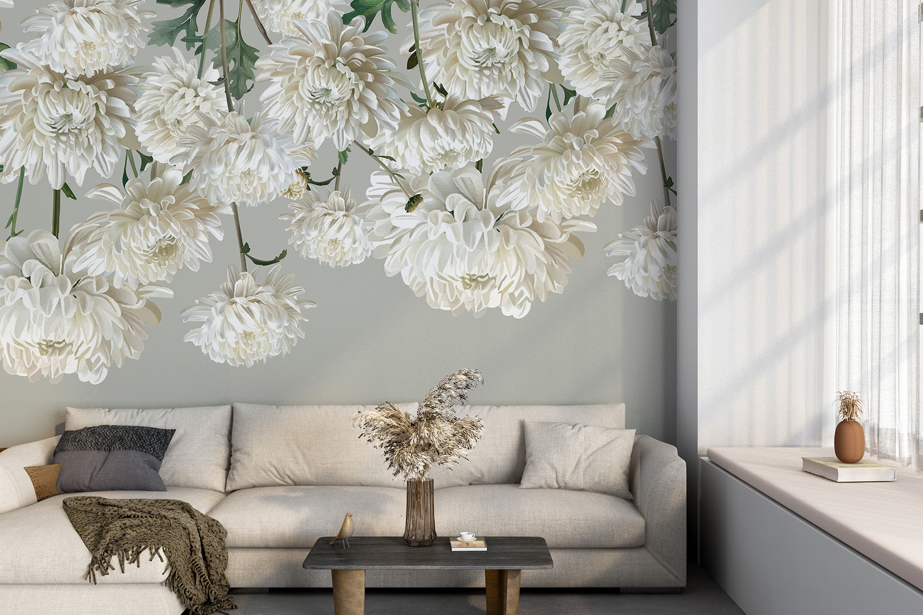 Imaginați-vă că intrați într-o cameră și simțiți că vă plimbați printr-o grădină senină. Este exact ceea ce vă oferă pictura murală “Grup de flori albe”. Aceste flori delicate au un mod de a insufla calm și eleganță în orice spațiu. Sunt genul de flori care nu se ofilesc niciodată – ce convenabil! Perfect pentru oricine adoră o atingere a naturii fără atacul polenului. Imaginează-ți asta în sufrageria ta: prietenii sorbind cafea, discutând și simțind brusc că au pășit într-un paradis floral. Este ca o grădină secretă care vă aparține tot anul.