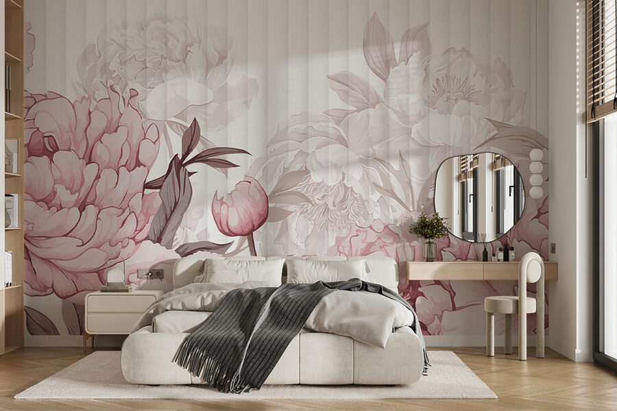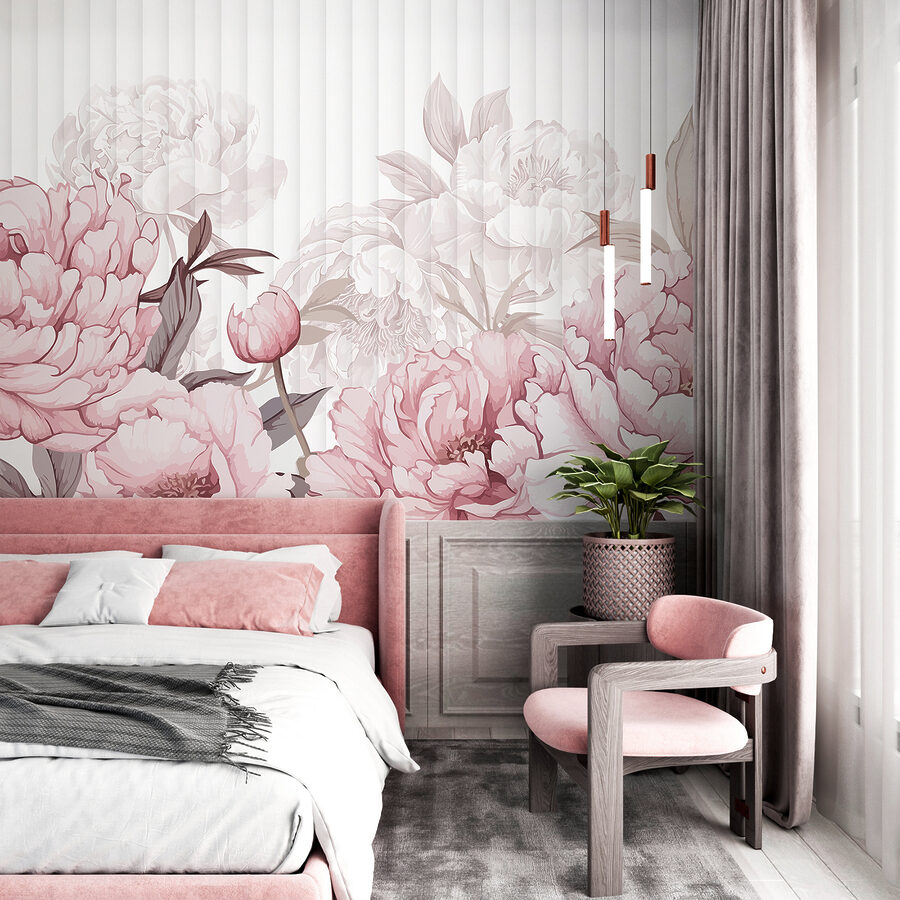“Blush Blooms in Gentle Allure” – nu-i așa că sună ca ceva desprins dintr-un roman de dragoste de vis? Această pictură murală va transforma orice cameră într-un tărâm al minunilor floral confortabil. Imaginați-vă că vă sorbiți cafeaua de dimineață (sau ceaiul, fără judecată) în timp ce sunteți înconjurat de aceste bujori moi, roz – par să se aplece pentru o șoaptă secretă. Perfect pentru iubitorii de flori sau pentru oricine dorește să adauge o notă de natură fără a fi nevoie să uzi. Este ca și cum ai avea o grădină, fără albine și veverițe șirete. Cine ar putea rezista unui farmec atât de blând?