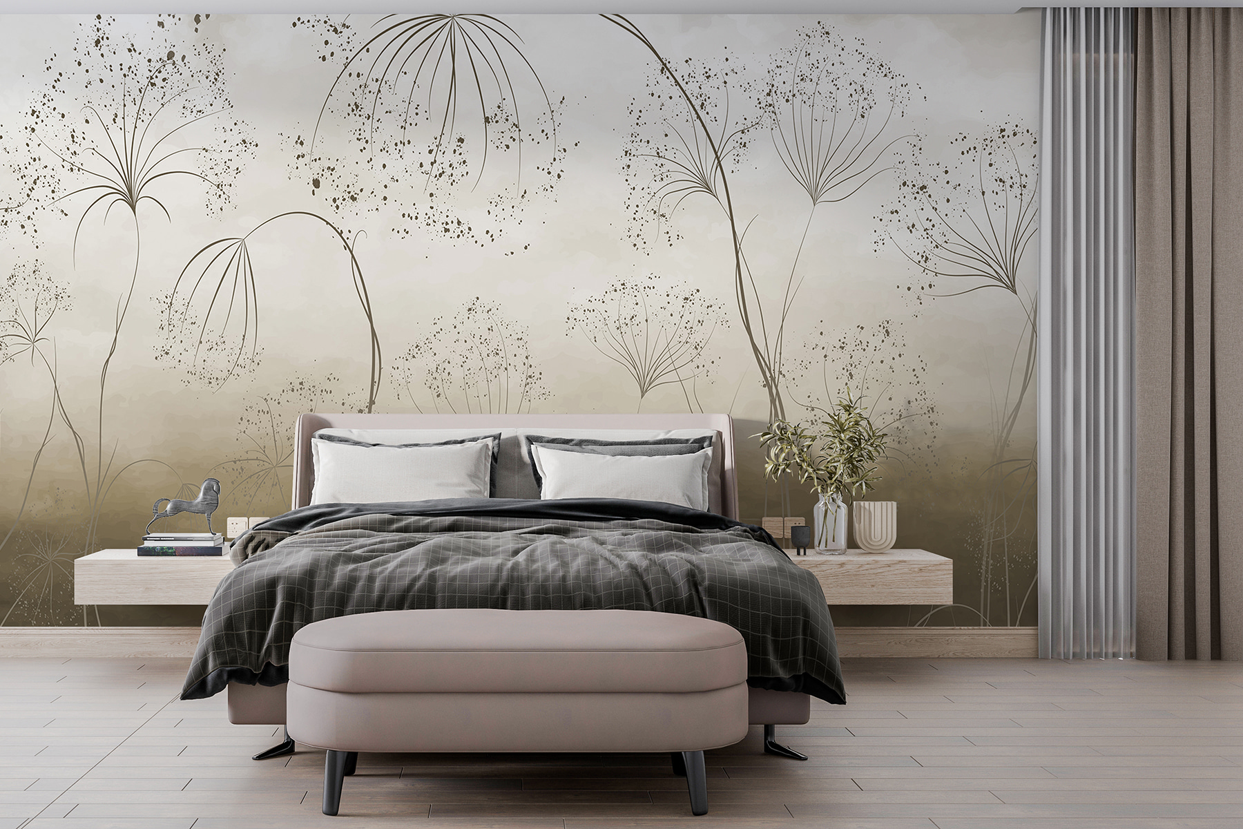 Transformați orice cameră cu această pictură murală capricioasă care surprinde farmecul delicat al păpădiilor dansând în briză. Aceste tușe de pensulă moi și curgătoare evocă un peisaj de vis, invitând natura chiar în casa dvs. Imaginați-vă o dimineață liniștită, cu cafeaua în mână, în timp ce frumusețea blândă a acestei picturi murale înveselește pereții. Într-o clipă vă imaginați o pajiște însorită, iar în următoarea vă pierdeți în gânduri, visând la locuri îndepărtate. Ideală pentru un living confortabil sau un dormitor senin – este ca și cum ai avea o bucată de natură care nu se ofilește niciodată! Aveți grijă doar la semințele imaginare de păpădie care plutesc pe lângă dvs.