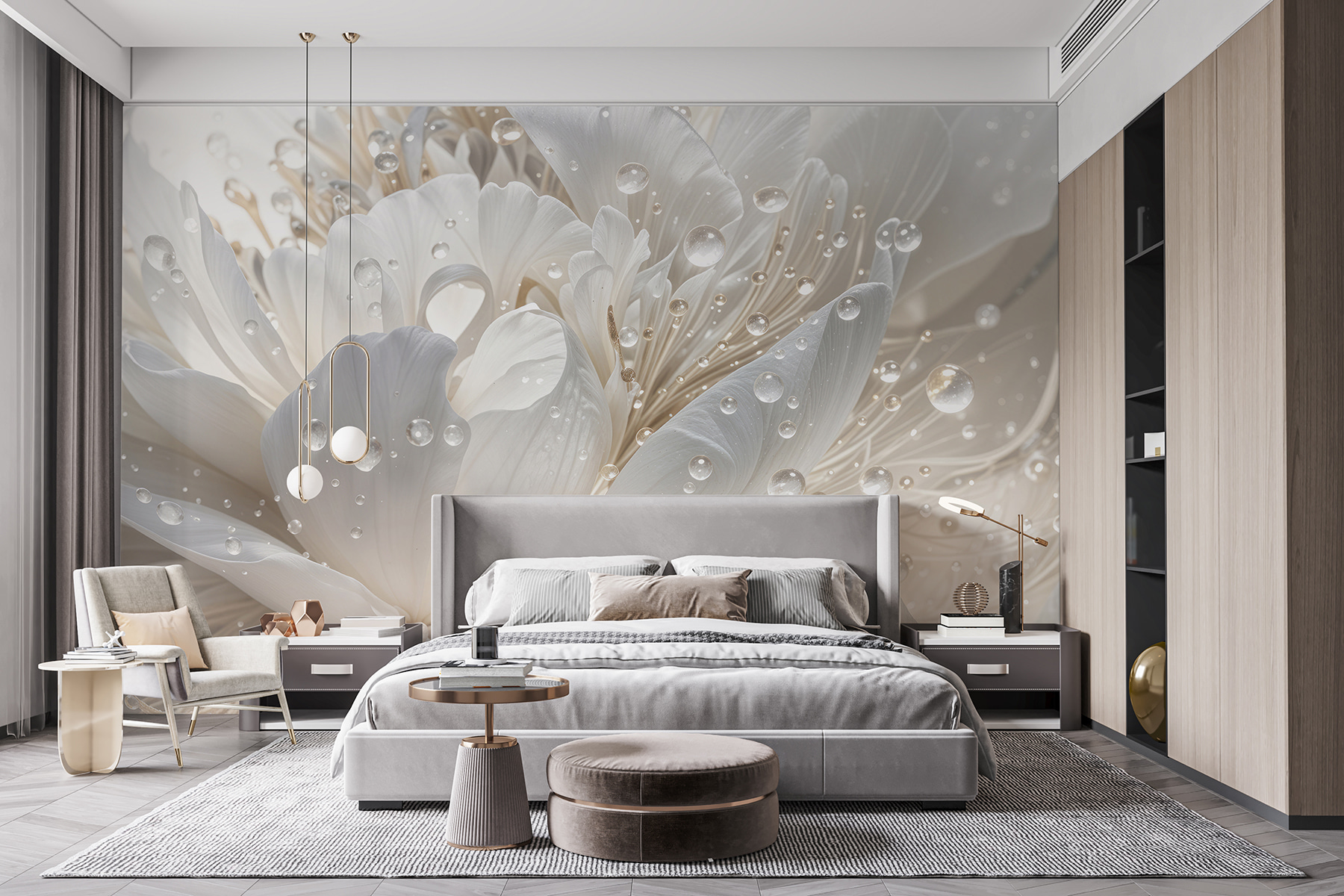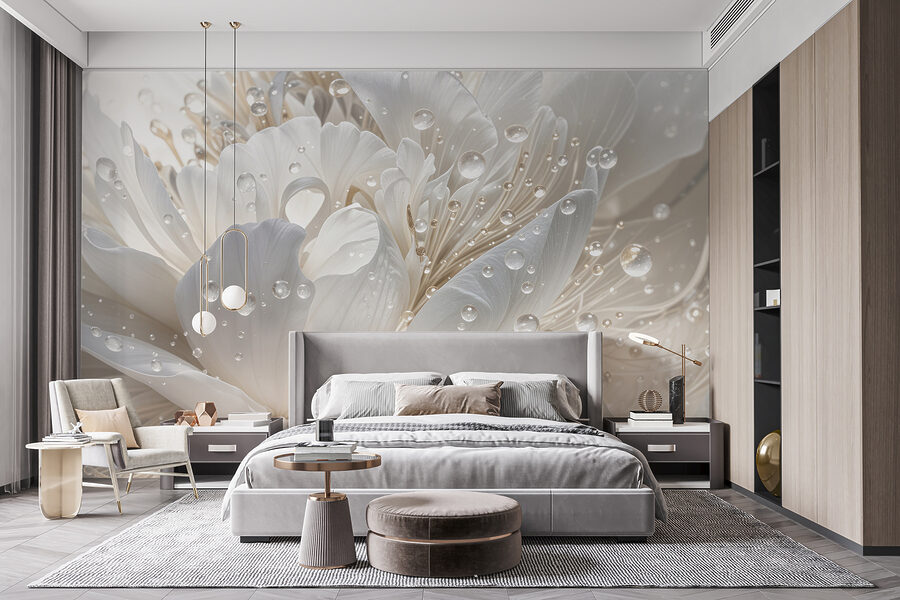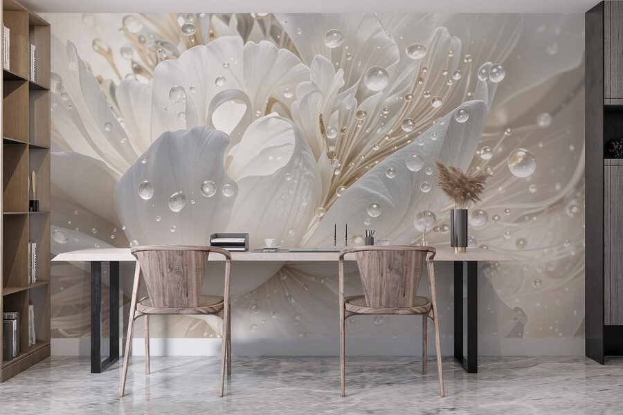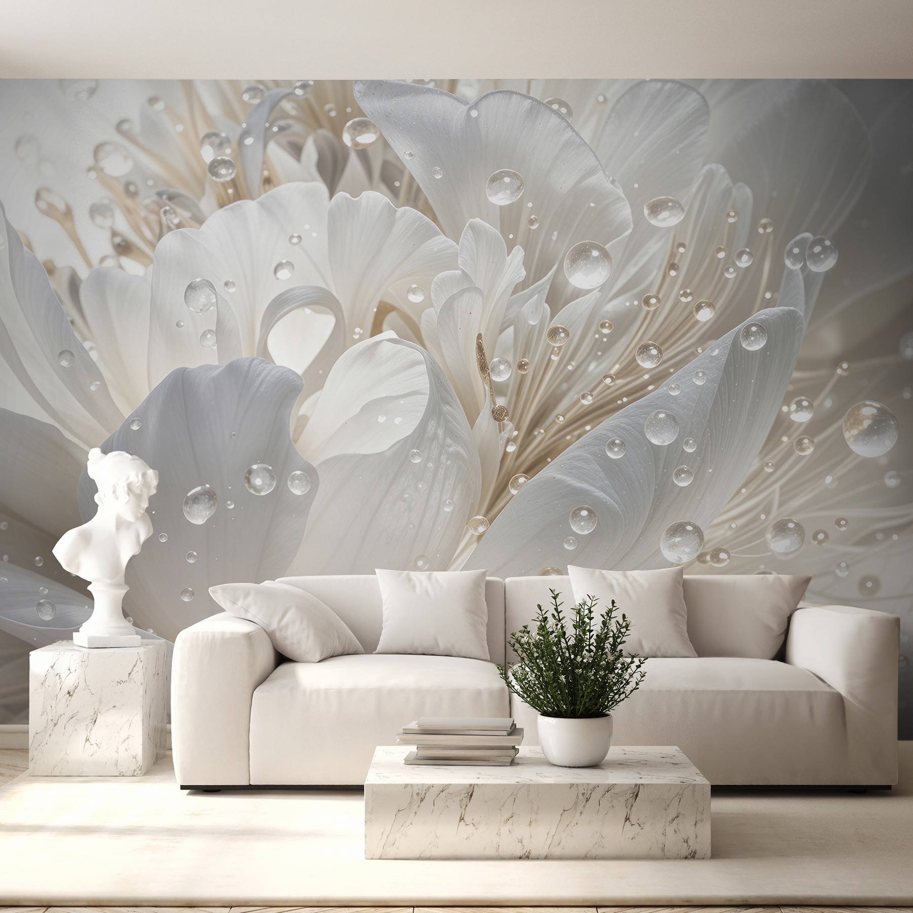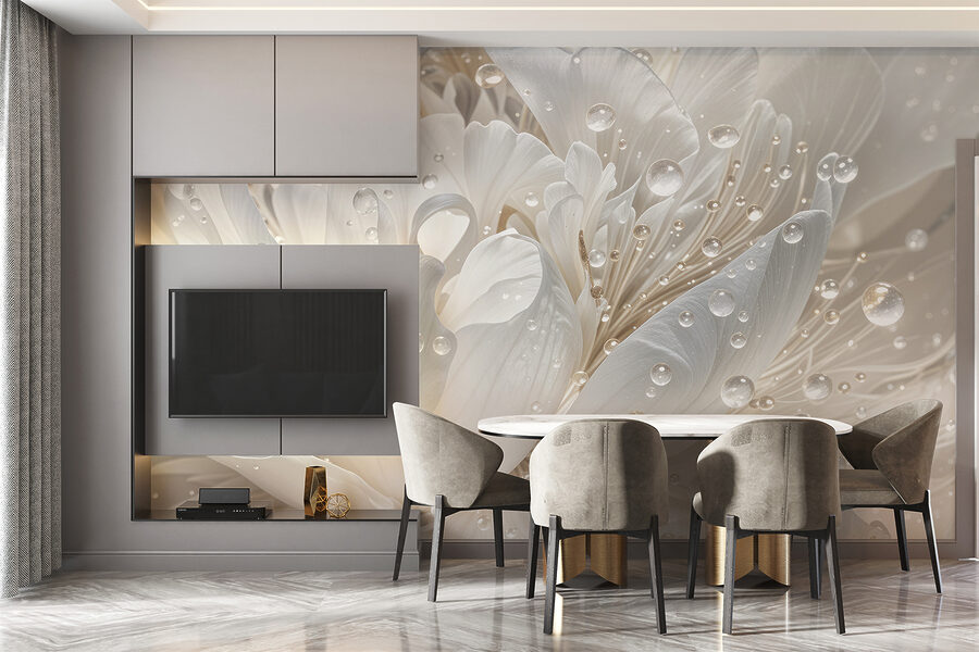 Imaginați-vă că intrați într-o cameră în care petalele sărutate de rouă strălucesc în lumina soarelui, aproape ca o grădină secretă în interior. Această pictură murală nu este doar o decorațiune de perete – este un stimulent pentru starea de spirit. Perfect pentru cei care văd frumusețea în lucrurile mărunte, precum picăturile de ploaie care se agață de o floare. S-ar putea să vă treziți sorbind din cafea, privind-o și simțind cum vibrații calme vă invadează. Este acea șoaptă blândă a naturii, care ajută spațiile – mari sau mici – să înflorească cu căldură și magie. De asemenea, stârnește conversații!