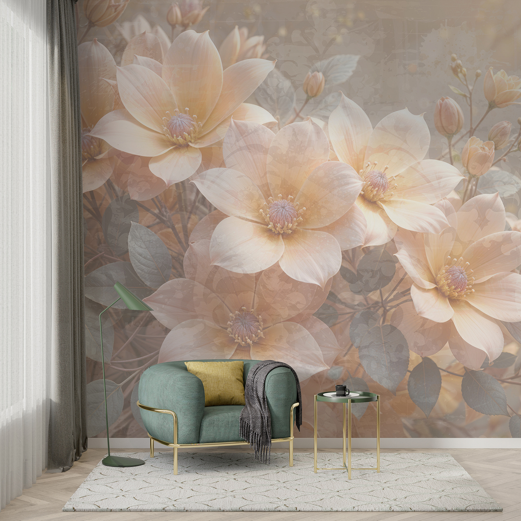 Transformați orice cameră într-o evadare de vis cu această pictură murală care prezintă un minunat grup de flori cuibărit printre frunze delicate. Imaginați-vă acest lucru: intrați într-un spațiu accentuat de culori calde, moi, și dintr-o dată vă simțiți ca primăvara pe tot parcursul anului. Stilul acuarelei aduce o atingere blândă, aproape ca și cum florile și-ar șopti secretele. Imaginați-vă că vă relaxați cu o carte bună, iar fundalul floral vă învăluie în confort. Nu este doar decor; este o experiență, o mică felie de natură chiar în casa ta. Perfect pentru cei care visează cu ochii deschiși și pentru iubitorii de natură deopotrivă, stârnește zâmbete și poate chiar puțină inspirație. Cine ar fi crezut că pereții pot fi atât de plini de viață?