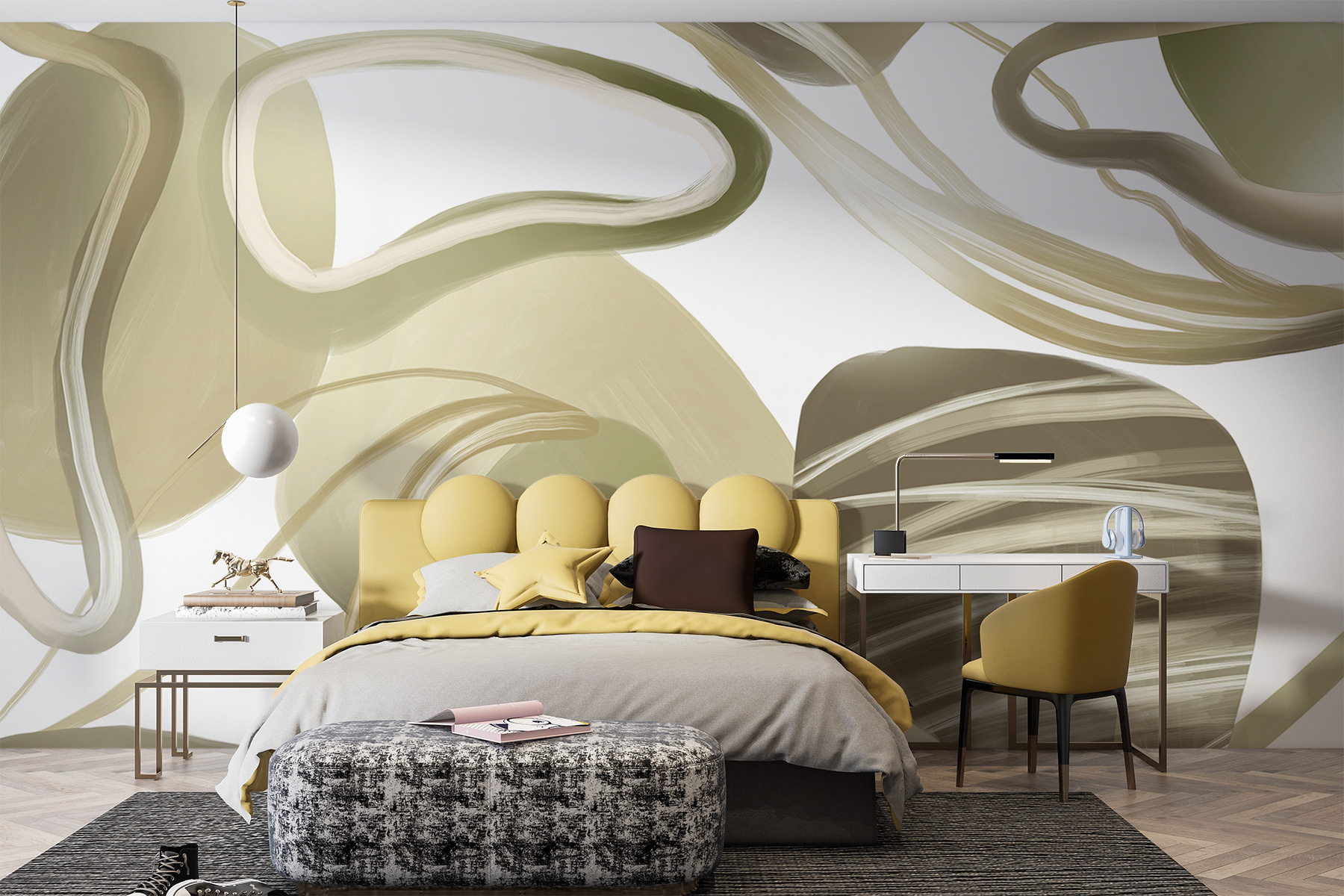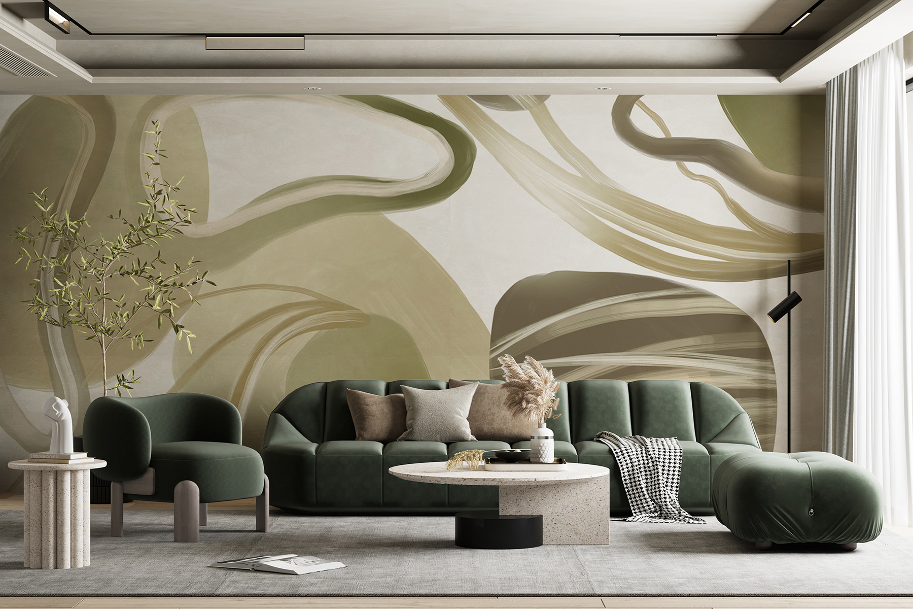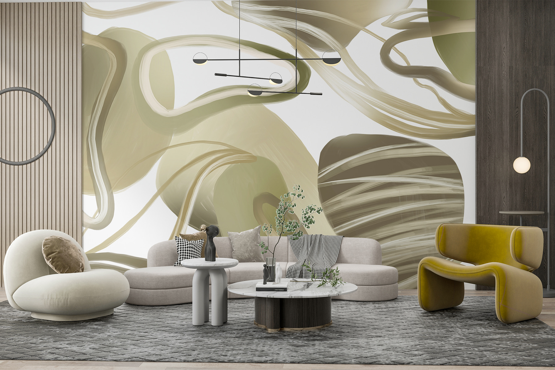 Imaginați-vă că intrați într-o cameră în care pereții parcă se învârt ușor în jurul vostru – prezentând pictura murală “Eleganță în vârtej în formă abstractă”. Este ca și cum ai păși într-un vis zen, unde contemporanul se întâlnește cu confortabilul. Liniile moi, curgătoare, vă invită să vă relaxați, poate cu o ceașcă de ceai. Perfectă pentru a transforma orice spațiu într-un sanctuar, este ca și cum pictura murală șoptește: “Relaxează-te, rămâi o vreme”. Nu este doar o pictură murală – este o vibrație. Transformați-vă colțișorul preferat și simțiți cum calmul vă cuprinde simțurile.
