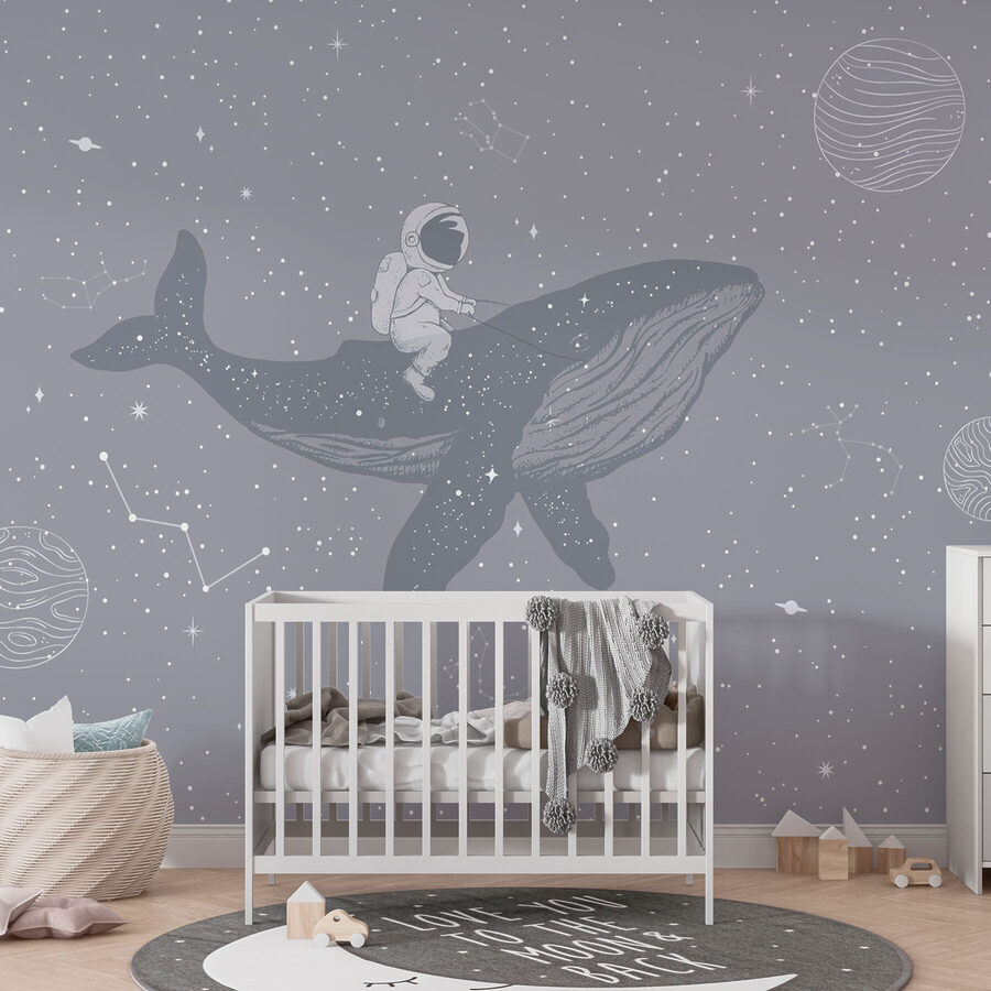 Imaginați-vă că intrați într-o cameră și găsiți un astronaut care călărește cu dezinvoltură o balenă prin spațiu. O pictură murală, desprinsă dintr-o poveste de adormit copiii! Este ca și cum universul a decis să amestece cele mai bune animale și galaxii pentru o călătorie în fantezie. Perfectă pentru visători și privitori de stele, va transforma orice perete într-un peisaj marin interstelar. Simțiți magia – plutiți alături de stele și planete, în timp ce vă relaxați acasă. Cine are nevoie de un televizor când te întâmpină vibrații cosmice și o balenă uriașă prietenoasă? Ești pregătit pentru o aventură? Scufundați-vă!