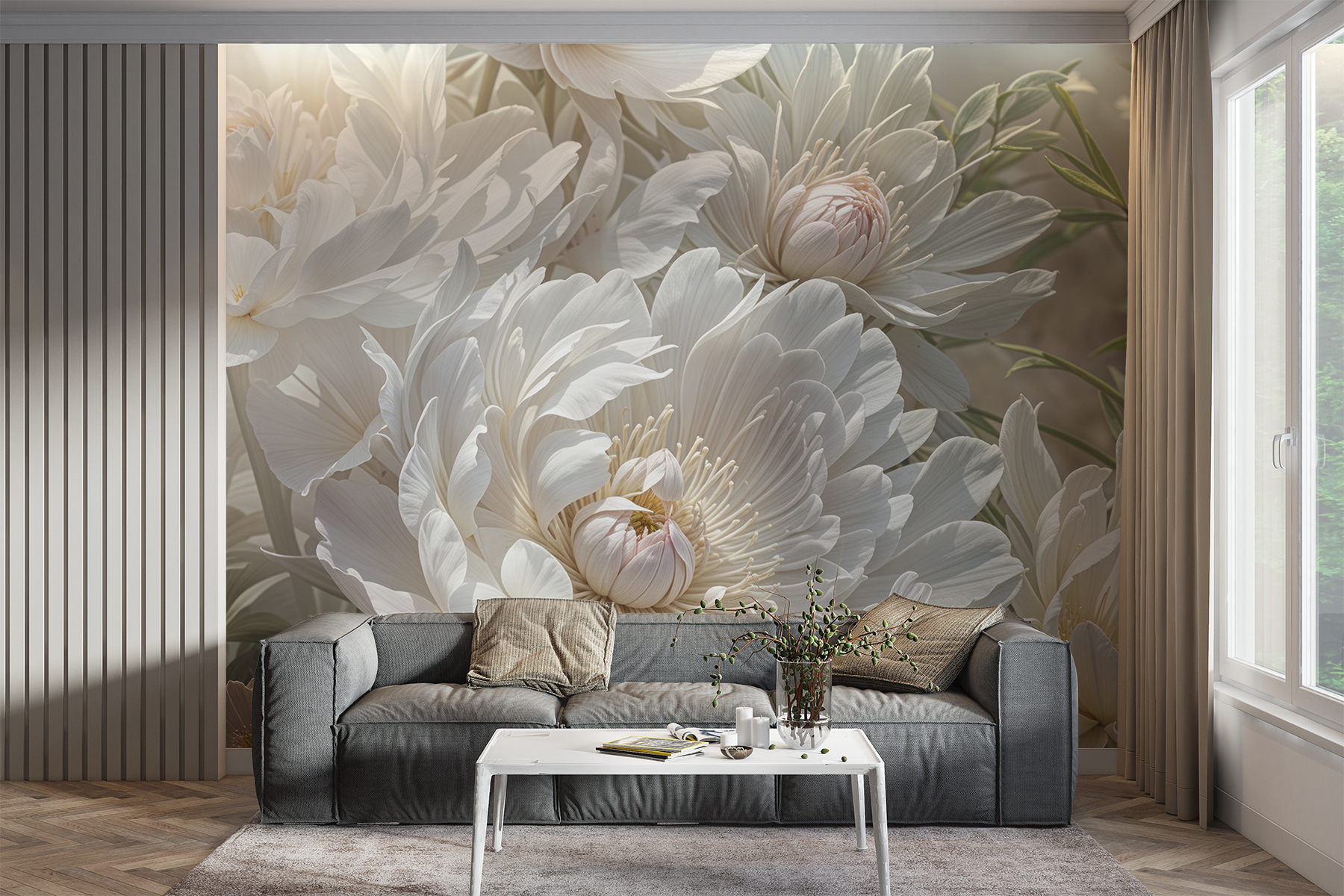Imaginați-vă că pășiți într-o cameră scăldată în lumina blândă a soarelui, unde florile delicate șoptesc secretele primăverii. “Delicate Blossoms in Sunlit Elegance” nu este doar o pictură murală – este ca și cum ai prinde o briză ușoară parfumată cu grație florală. Perfectă pentru a face orice spațiu să se simtă ca o grădină ascunsă, această încântare în acuarelă aduce natura în interior cu o notă de magie. Este ca un imbold blând din partea Mamei Natură care vă reamintește să o luați încet și să vă bucurați de lucrurile mărunte. Ideală pentru colțuri confortabile sau livinguri pline de viață – oriunde aveți nevoie de o gură de aer proaspăt.
