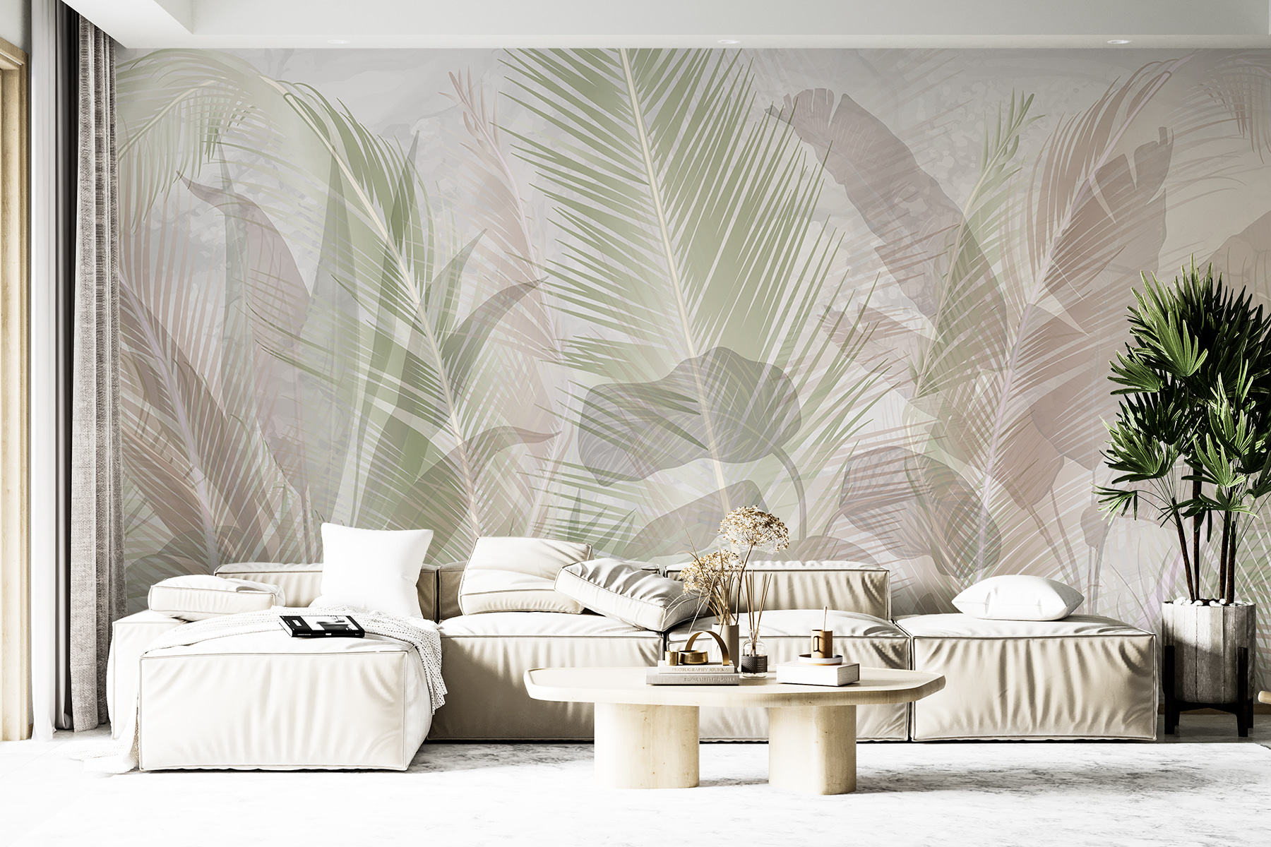 Imaginează-ți asta – intri în spațiul tău și, dintr-o dată, o briză blândă de seninătate te învăluie. Asta este ceea ce face “Palm Leaves Gentle Brushstrokes”. Este ca o mică escapadă personală în junglă, chiar pe peretele tău. Frunzele moi de palmier nu stau doar frumos, ci șoptesc povești despre retrageri tropicale și după-amieze leneșe. Fie că vă decorați sufrageria sau decorați un colț de lectură, aceste picturi murale creează o atmosferă liniștitoare care vă va uimi atât pe dumneavoastră, cât și pe oaspeții dumneavoastră. Perfect pentru visători și iubitorii de natură deopotrivă!