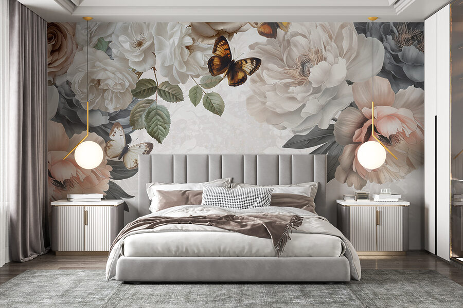 Imaginați-vă că intrați într-o cameră și simțiți că tocmai ați pășit într-o grădină de vis, cu o briză ușoară pe față. Această pictură murală “Grup de flori cu fluturi” nu este doar decor – este o evadare. Trandafirii și bujorii dansează în jur, în timp ce fluturii fluturători adaugă o notă de fantezie. Perfect pentru toți cei care cred că pereții ar trebui să facă mai mult decât să susțină acoperișul – ar trebui să șoptească și povești. Face ca viața de zi cu zi să pară mai puțin obișnuită și mult mai frumoasă. Ideal pentru spațiile care doresc un strop din farmecul naturii!