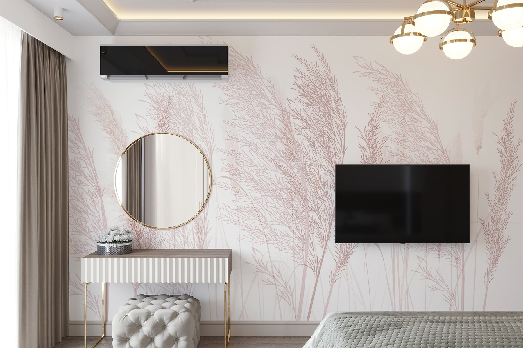 Imaginați-vă acest lucru: o briză blândă foșnind printr-un câmp, unde ierburile se leagănă și mici flori roz ies timid la iveală. Această pictură murală, cu frumusețea sa subtilă, transformă orice cameră într-un refugiu liniștit, inspirat de natură. Este genul de lucru care te face să te oprești, să respiri adânc și poate chiar să zâmbești, simțind un pic de calm în haos. Perfect pentru oricine dorește un pic de aer liber în interior. În plus, este un fundal încântător pentru a visa cu ochii deschiși – doar priviți florile dansând pe perete!