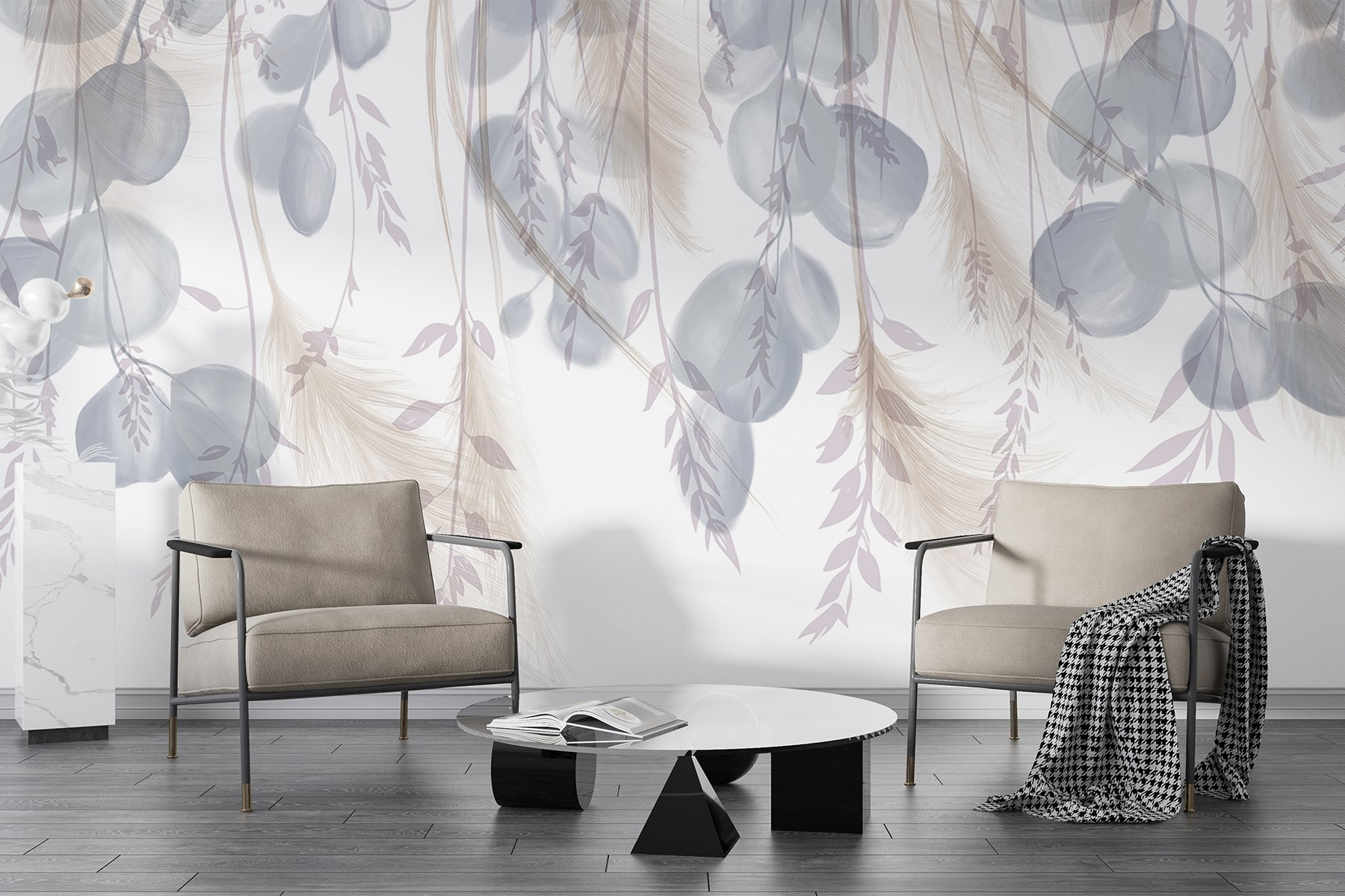 Transformați-vă spațiul cu pictura murală de perete “Delicate Foliage with Soft Hues”! Imaginați-vă că pășiți într-o cameră în care frunzele delicate, în acuarelă, se leagănă ușor în nuanțe de albastru cețos și neutru cald, ca o briză confortabilă într-o zi de primăvară. Este ca și cum ați invita natura în interior, perfect pentru o atmosferă liniștitoare după o zi lungă. Imaginați-vă citind o carte acolo, sorbind ceai sau chiar visând cu ochii deschiși – pentru că cui nu-i place o mică evadare? Această pictură murală șoptește liniște, făcând chiar și cele mai mohorâte zile să pară un pic mai luminoase. O notă de eleganță care se simte șic fără efort, la fel ca acel prieten care reușește întotdeauna să arate fabulos fără să se străduiască prea mult!