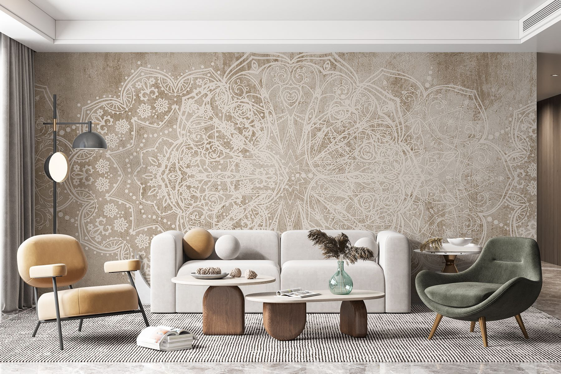 Transformați orice cameră într-un refugiu confortabil cu această pictură murală uimitoare care prezintă un design ornamentat alb pe un fundal maro cald. Imaginați-vă că vă relaxați cu o ceașcă de cafea în timp ce priviți modele complicate care par aproape că vă șoptesc secrete de confort și creativitate. Este ca și cum ai invita o operă de artă să locuiască în casa ta. Perfectă pentru o cameră de zi sau un dormitor capricios, această pictură murală aduce o notă de eleganță și căldură. În plus, s-ar putea să-i facă pe ceilalți să întrebe: “De unde ai luat asta?” – iar tu poți zâmbi cu bună știință. Nu este doar un decor; este un starter de conversație!