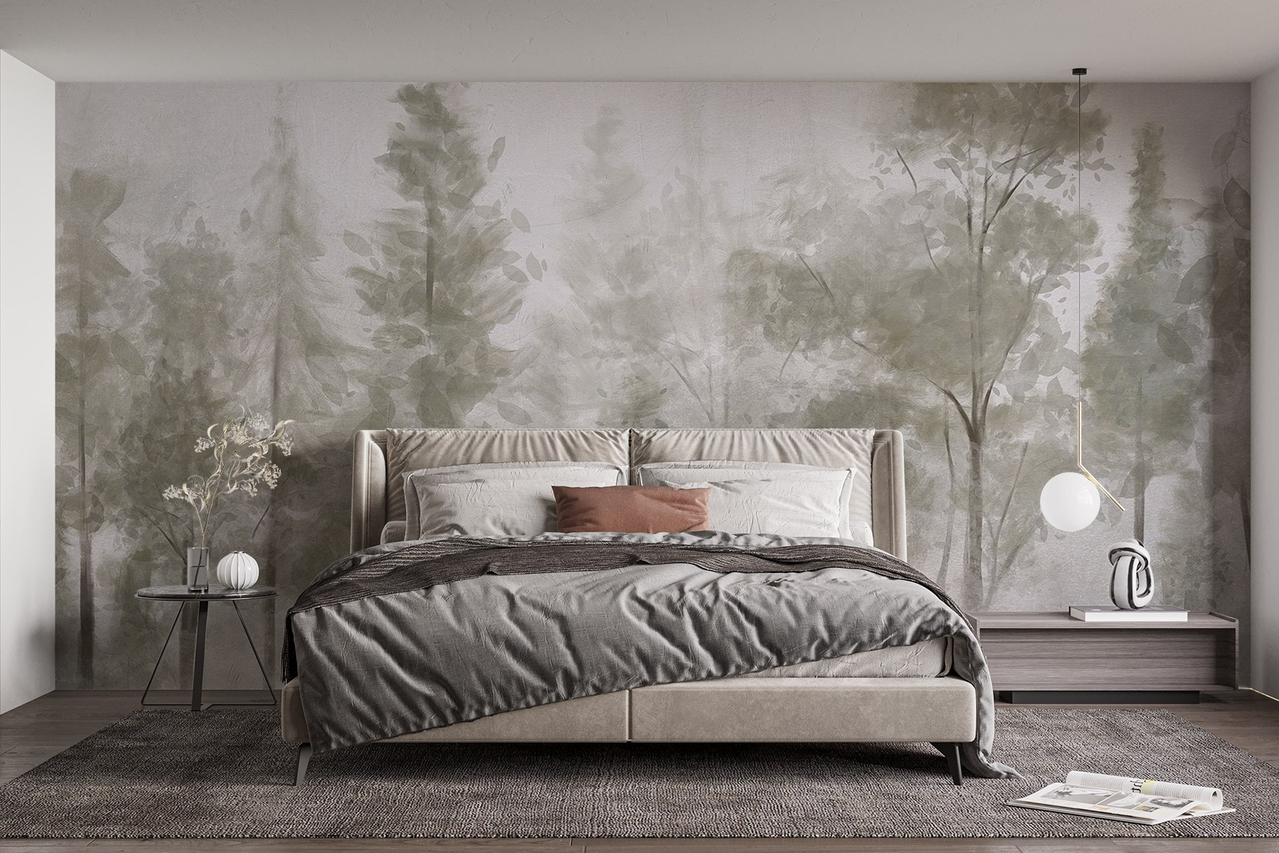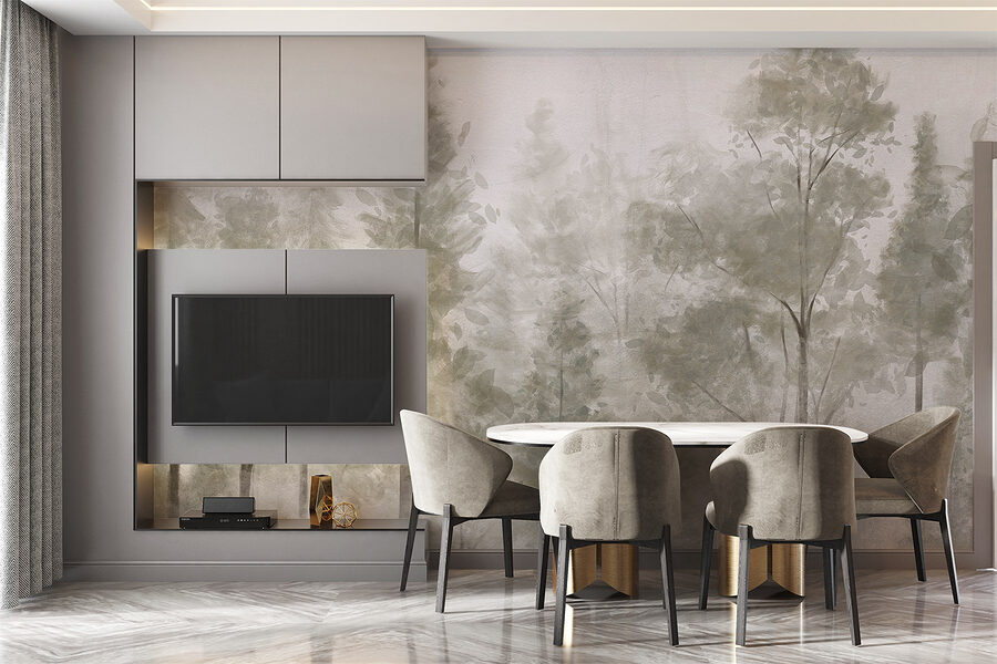 Nuanțele blânde de verde și gri creează o atmosferă liniștită, făcând-o o potrivire perfectă pentru diferite stiluri de decor. Imaginați-vă sorbindu-vă cafeaua de dimineață în timp ce priviți această scenă liniștită – cine are nevoie de o cabană în pădure când puteți avea asta? Lăsați șoaptele naturii să vă umple spațiul și poate chiar să vă facă să visați cu ochii deschiși. Nu este doar decor; este o evadare zilnică.