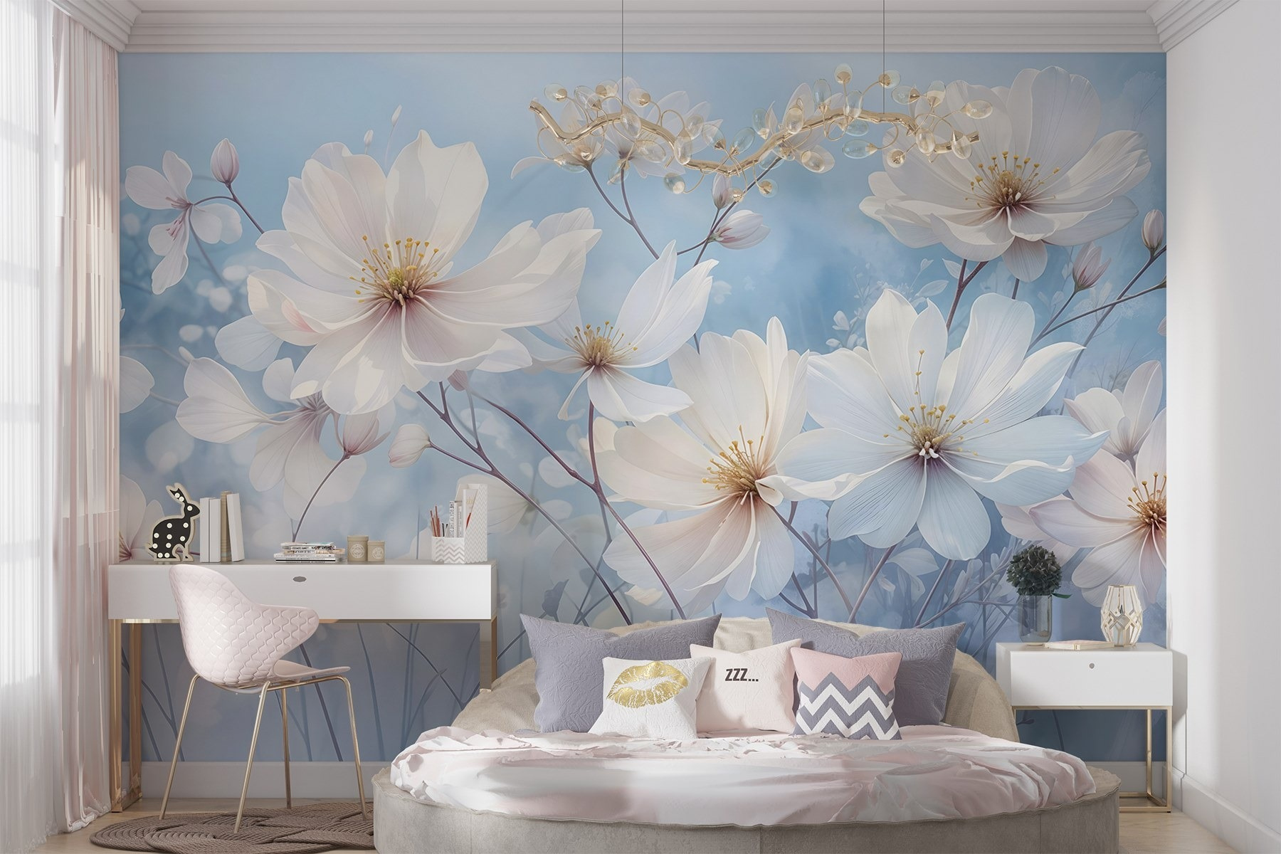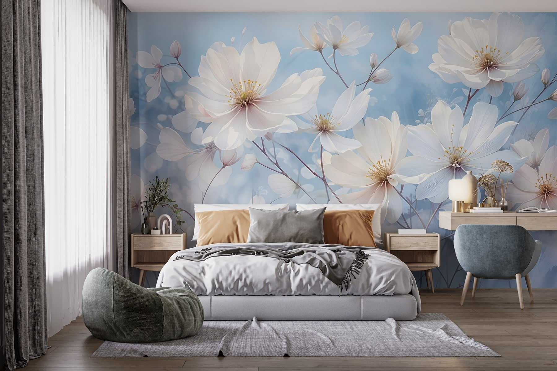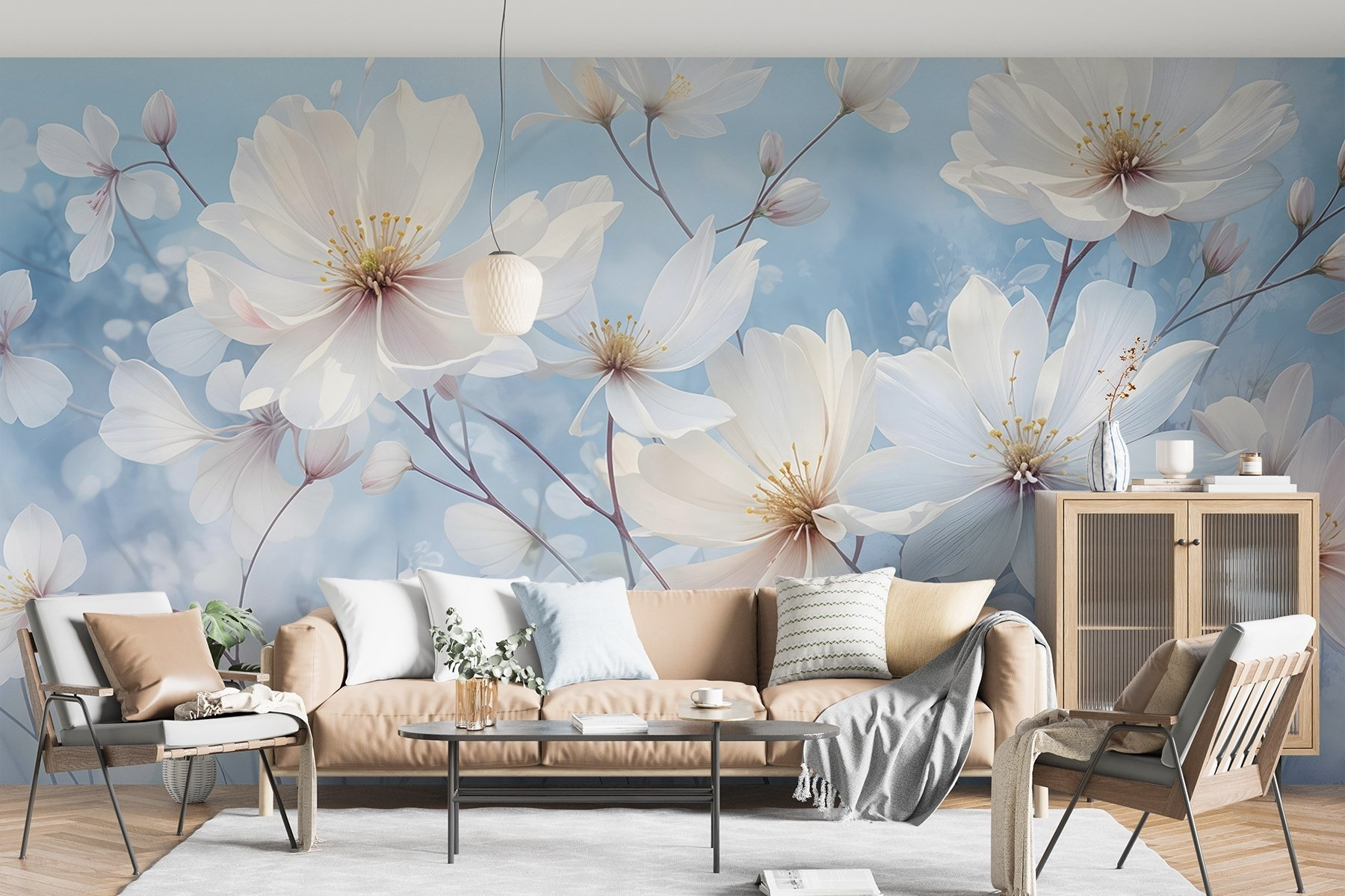Transformați orice cameră într-o oază de seninătate cu acest “Fototapet Group of White Flowers”. Imaginați-vă acest lucru: o briză moale și blândă care curge prin ferestrele deschise, în timp ce aceste flori delicate aduc un aer de calm și farmec spațiului dvs. Efectul de acuarelă îndulcește marginile și se îmbină frumos cu decorul dvs., creând un fundal liniștit care invită la visare cu ochii deschiși. Imaginați-vă sorbindu-vă cafeaua de dimineață, simțindu-vă ca într-o grădină minunată, chiar dacă este doar sufrageria dvs. confortabilă. Este genul de pictură murală care spune: “Da, viața este destul de frumoasă”, fără ca măcar să încerce. Perfectă pentru oricine dorește o atingere a naturii în interior, această pictură murală este ca o îmbrățișare caldă într-o zi friguroasă. Deci, de ce să nu lăsați aceste flori minunate să vă lumineze peretele?
