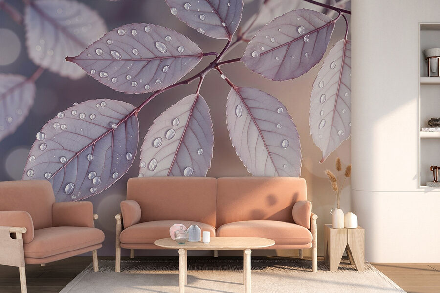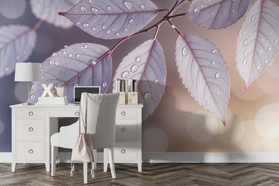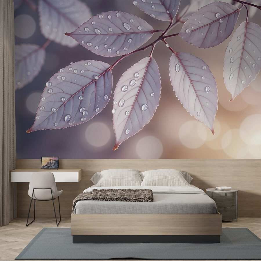 Transformați-vă spațiul cu această pictură murală uimitoare cu frunze delicate împodobite cu picături de ploaie. Este ca și cum ai aduce o bucată de natură în interior, fără pantofii plini de noroi! Imaginați-vă că intrați în camera dvs. și bam! Sunteți întâmpinat de această scenă liniștitoare în fiecare zi. Efectul moale de acuarelă adaugă o notă visătoare, creând un sentiment care este atât senin, cât și răcoritor.
