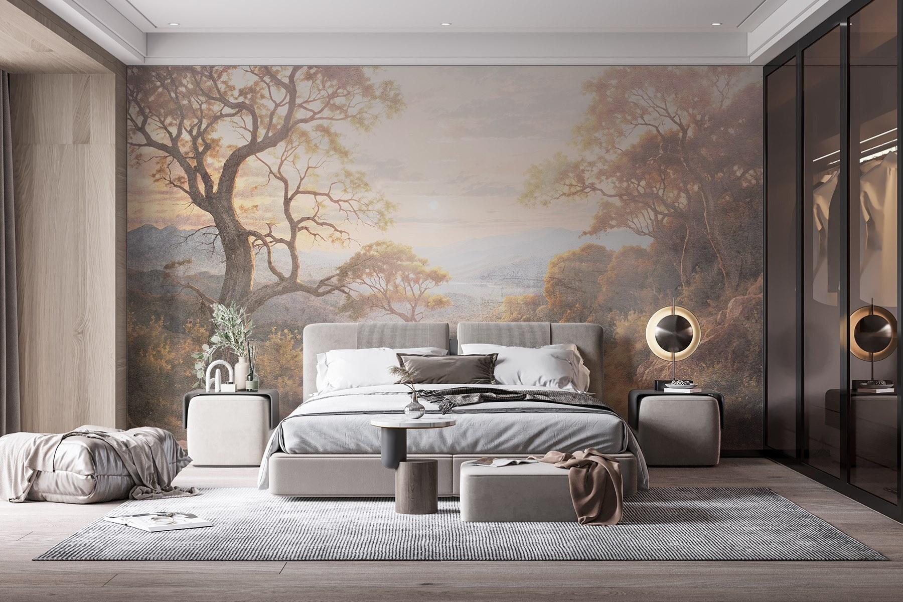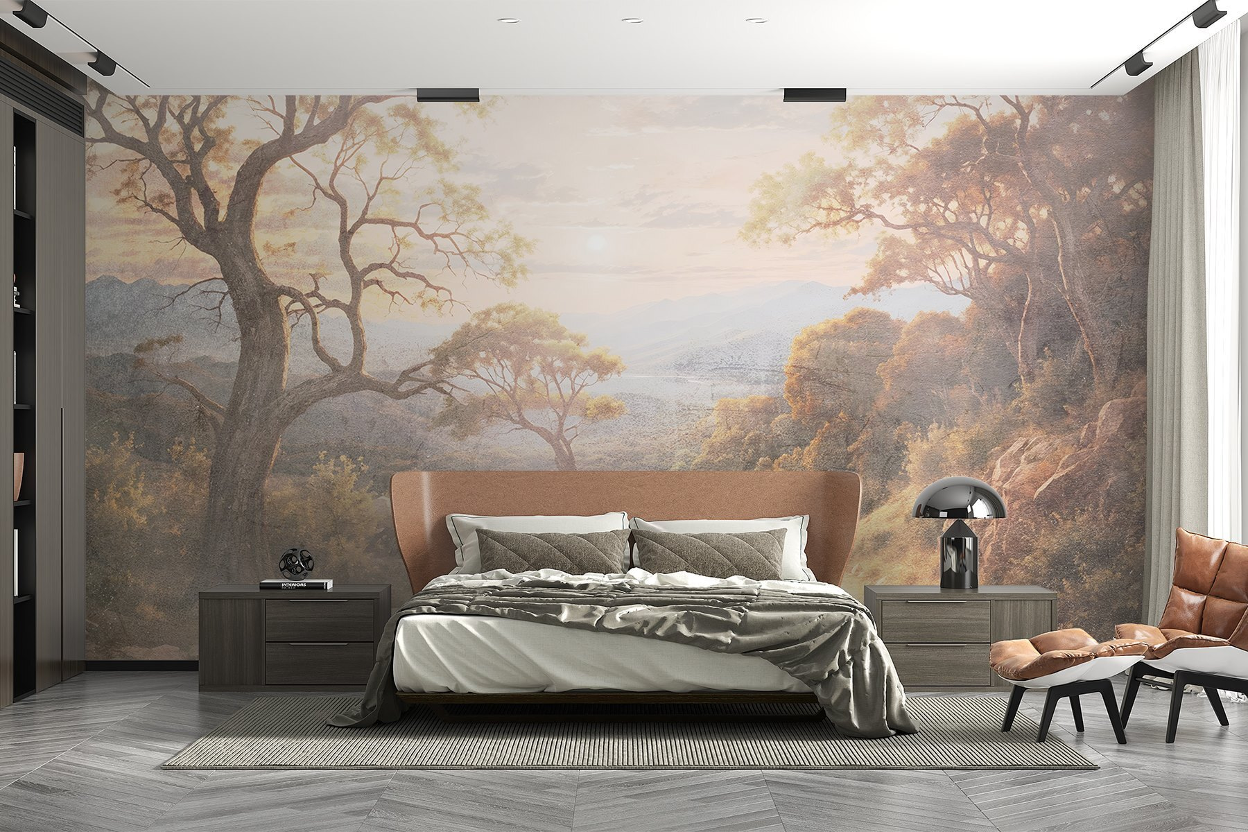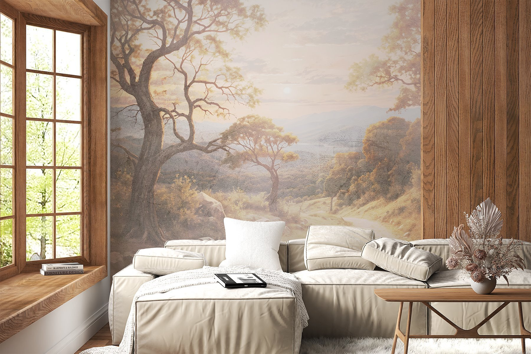 Transformați orice cameră într-o evadare senină cu această pictură murală încântătoare, care prezintă un drum de pământ sinuos flancat de copaci maiestuoși și munți îndepărtați. Imaginați-vă că pășiți într-un paradis liniștit de fiecare dată când intrați în spațiul dumneavoastră. Culorile moi și texturile blânde vă atrag înăuntru, ca și cum v-ar invita să vă plimbați pe acea cărare de vis. Perfectă pentru camerele de zi sau pentru colțurile de lectură, aceasta șoptește calm și aduce frumusețea naturii în interior. Gândiți-vă doar – prietenii ar putea începe să vă întrebe dacă v-ați mutat la țară! Reîmprospătați-vă pereții și lăsați vibrațiile relaxante să curgă; această pictură murală are magia naturii de împărtășit.