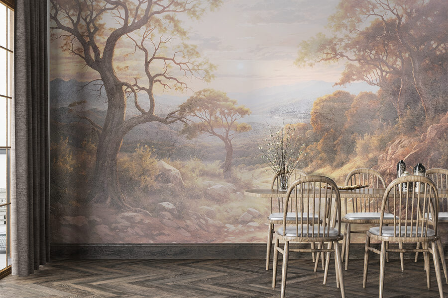 Transformați orice cameră într-o evadare senină cu această pictură murală încântătoare, care prezintă un drum de pământ sinuos flancat de copaci maiestuoși și munți îndepărtați. Imaginați-vă că pășiți într-un paradis liniștit de fiecare dată când intrați în spațiul dumneavoastră. Culorile moi și texturile blânde vă atrag înăuntru, ca și cum v-ar invita să vă plimbați pe acea cărare de vis. Perfectă pentru camerele de zi sau pentru colțurile de lectură, aceasta șoptește calm și aduce frumusețea naturii în interior. Gândiți-vă doar – prietenii ar putea începe să vă întrebe dacă v-ați mutat la țară! Reîmprospătați-vă pereții și lăsați vibrațiile relaxante să curgă; această pictură murală are magia naturii de împărtășit.