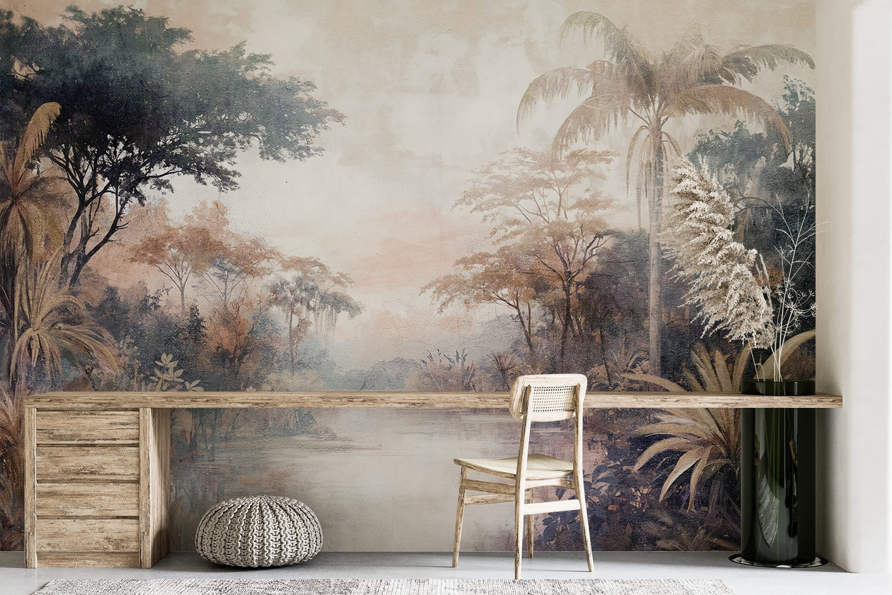 Transformați-vă spațiul într-o escapadă senină cu “Fototapet River with Trees and Plants”. Imaginați-vă că pășiți într-un peisaj de vis în care verdeața luxuriantă întâlnește un râu liniștit – ce vibrație! Această pictură murală nu este doar o acoperire de perete; este ca și cum ai avea o bucată de natură chiar la tine acasă. Tonurile moi, pământii, invită la calm, făcând ca fiecare duminică leneșă să se simtă ca o mini-vacanță. Imaginați-vă un colț de lectură confortabil, cu această pictură murală ca fundal, cu o ceașcă caldă de ceai în mână. Dintr-o dată, grijile dispar, iar natura vă șoptește cuvinte dulci. Perfect pentru cei care tânjesc după o atingere tropicală fără arsuri solare. Nu este vorba doar de decor, ci și de senzație!
