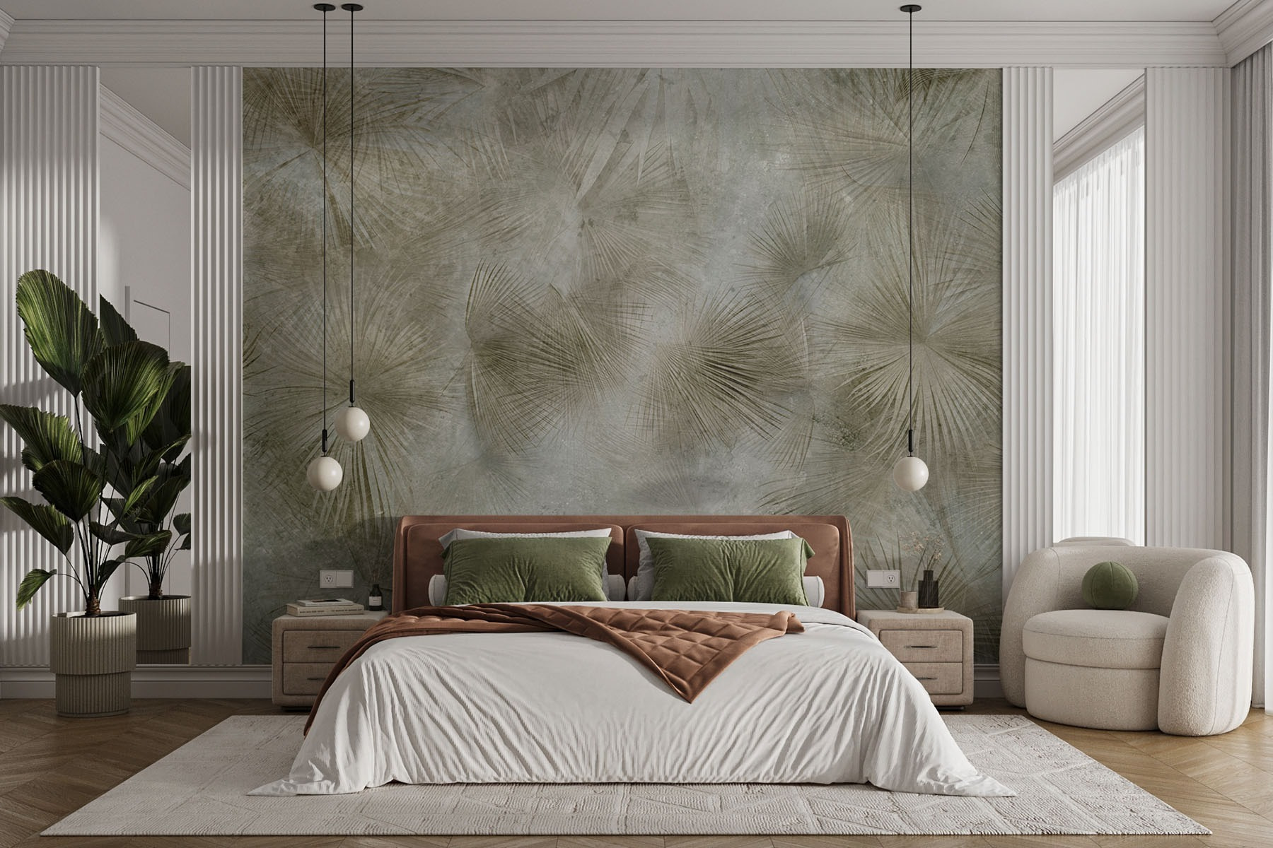 Transformați-vă spațiul cu această pictură murală uimitoare cu frunze de palmier luxuriante care dansează pe perete. Este ca și cum ai aduce o felie din tropice chiar acasă – fără umiditate și țânțari, slavă Domnului! Modelele liniștitoare creează o atmosferă calmă, perfectă pentru relaxare după o zi lungă sau doar pentru a savura o cafea într-o dimineață leneșă de duminică. Imaginați-vă că vă treziți și simțiți că ați pășit într-un refugiu confortabil. Fie într-o cameră de zi sau într-un dormitor senin, această pictură murală va stârni cu siguranță bucurie și poate un vis cu ochii deschiși sau două despre vacanțele pe plajă. Este o mică felie de paradis fără bilet de avion!