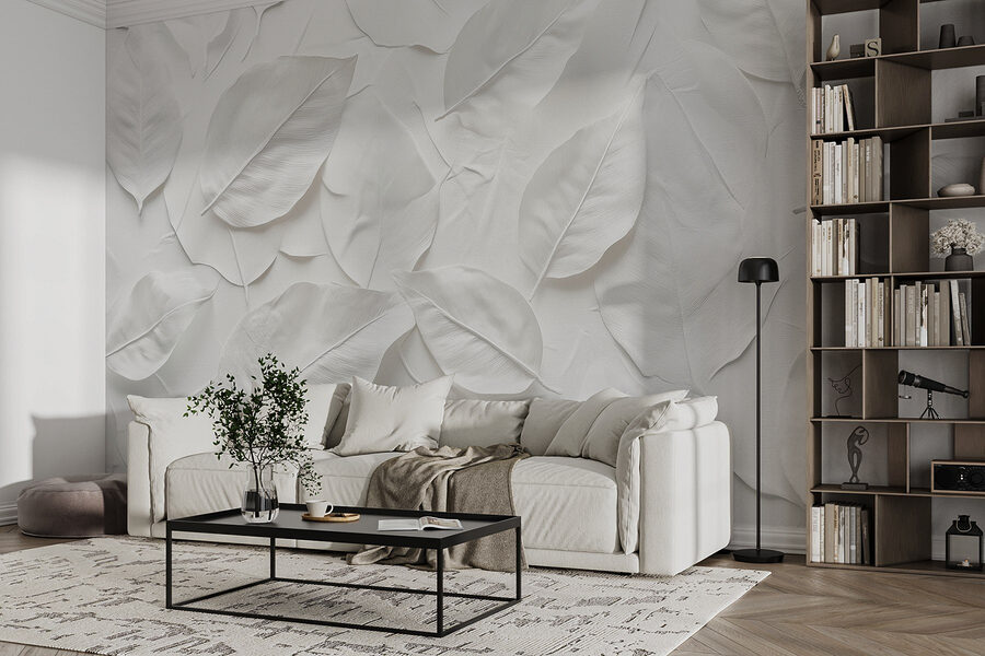 Transformați-vă spațiul cu această murală uimitoare care prezintă un aranjament minunat de frunze albe. Este ca și cum ați aduce o notă de natură în interior, fără a vă mai obosi să udați plantele. Imaginați-vă sorbindu-vă cafeaua de dimineață pe acest fundal senin, unde simplitatea întâlnește eleganța. Acest design adaugă o vibrație proaspătă, perfectă pentru cei care tânjesc după un refugiu calm chiar la ei acasă. Fie că este vorba de un living confortabil sau de un dormitor liniștit, această pictură murală pur și simplu șoptește “Relaxează-te”. Cine nu și-ar dori să se simtă un pic mai zen în fiecare zi? Este discret, dar remarcabil de încântător – la fel ca natura însăși.