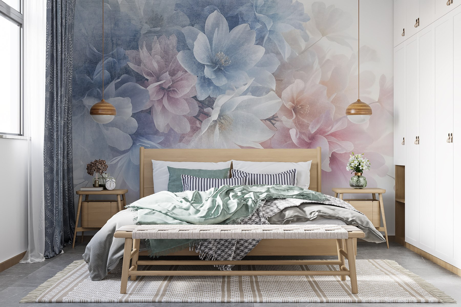 Perfectă pentru a crea un colț de lectură confortabil sau un fundal senin pentru dormitor, aceasta estompează frumos granițele dintre natură și artă. Acuarelele blânde se îmbină între ele, emițând o vibrație liniștitoare, aproape ca o briză răcoroasă într-o zi călduroasă. Prietenii vor observa și s-ar putea chiar să vă întrebe dacă ați descoperit vreo comoară botanică ascunsă. Aceste flori nu sunt doar decor; sunt o îmbrățișare pentru pereții tăi! Oferiți casei dvs. nota de fantezie și căldură pe care o merită.