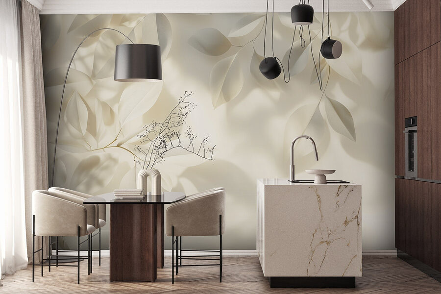 Transformați orice spațiu cu această pictură murală uimitoare, “Frunze albe pe o suprafață albă”. Este ca și cum ai invita o briză blândă în interior, aducând o notă răcoritoare de natură chiar în casa ta. Frunzele moi și elegante dansează pe perete, creând un fundal senin care te face să te simți instantaneu relaxat – gândește-te la dimineți confortabile cu cartea ta preferată sau la o atmosferă încântătoare de petrecere cu ceai. În plus, este suficient de versatil pentru orice cameră, fie că este vorba de un living șic sau de un dormitor liniștitor. Imaginați-vă complimentele prietenilor – ei vor crede că v-ați transformat casa într-un sanctuar elegant!