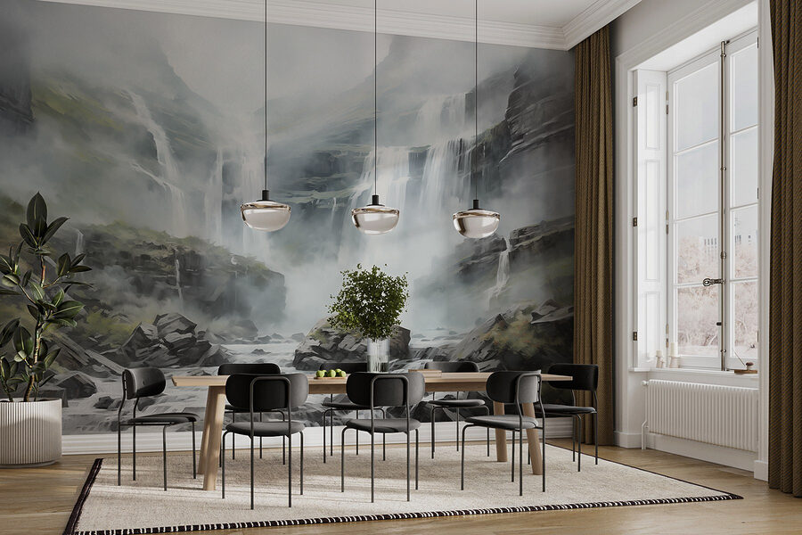 Imaginați-vă că pășiți într-o evadare senină de fiecare dată când vă uitați la perete. Această pictură murală, “Cascadă în munții cețoși”, surprinde perfect această magie. Imaginați-vă cascade acoperite de ceață moale, înconjurate de verdeață luxuriantă și terenuri stâncoase. Este ca o melodie liniștitoare a naturii chiar în camera dvs. de zi. Curgerea blândă a apei aproape că șoptește liniște, invitându-vă să vă opriți și să respirați. Prietenii s-ar putea chiar să se laude cu mini-vacanța petrecută la tine acasă, și cine nu și-ar dori asta? Este un mod ingenios de a aduce o felie de sălbăticie în interior. Perfectă pentru oricine visează la escapade liniștite, această pictură murală vă invită într-o lume în care stresul pur și simplu… dispare.