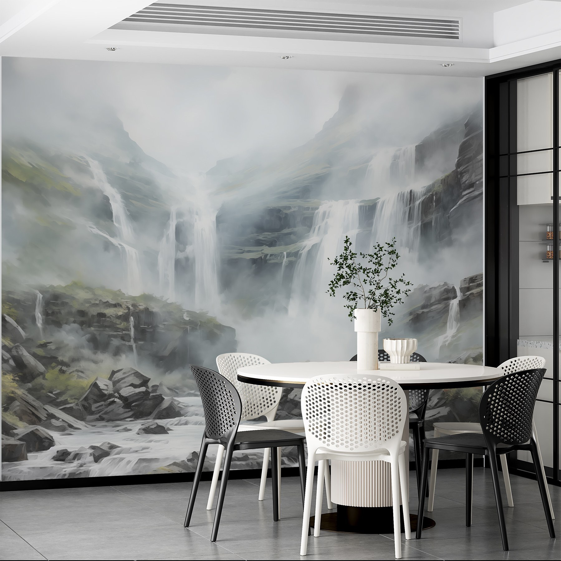 Imaginați-vă că pășiți într-o evadare senină de fiecare dată când vă uitați la perete. Această pictură murală, “Cascadă în munții cețoși”, surprinde perfect această magie. Imaginați-vă cascade acoperite de ceață moale, înconjurate de verdeață luxuriantă și terenuri stâncoase. Este ca o melodie liniștitoare a naturii chiar în camera dvs. de zi. Curgerea blândă a apei aproape că șoptește liniște, invitându-vă să vă opriți și să respirați. Prietenii s-ar putea chiar să se laude cu mini-vacanța petrecută la tine acasă, și cine nu și-ar dori asta? Este un mod ingenios de a aduce o felie de sălbăticie în interior. Perfectă pentru oricine visează la escapade liniștite, această pictură murală vă invită într-o lume în care stresul pur și simplu… dispare.