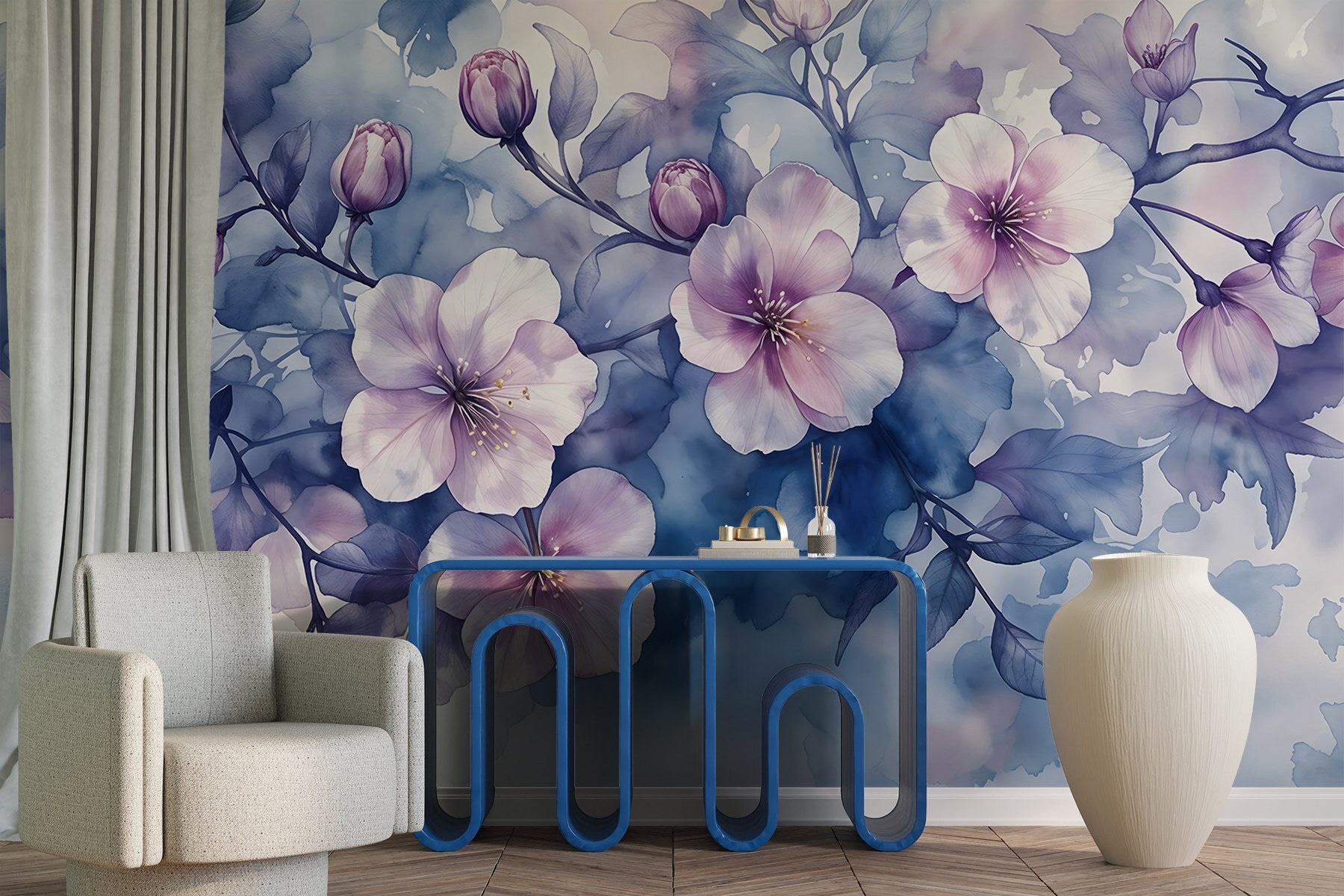 Transformați orice spațiu cu această pictură murală uimitoare, “Pictură murală de flori pe o creangă”. Imaginați-vă că pășiți într-o grădină japoneză senină de fiecare dată când intrați în cameră. Nuanțele moi de acuarelă creează o atmosferă de vis, care este atât liniștitoare, cât și înălțătoare. Este ca o gură de aer proaspăt – fără polen! Imaginați-vă după-amieze confortabile cu o carte în mână, înconjurat de flori înflorite. Perfect pentru camere de zi, dormitoare sau chiar un colț confortabil. Împrospătați pereții și lăsați frumusețea naturii să înflorească în interior. Cine nu și-ar dori să se simtă ca într-un refugiu liniștit într-o grădină?
