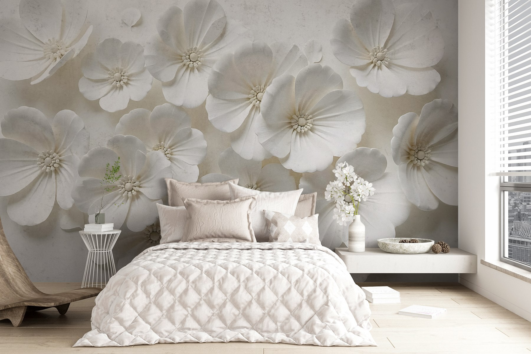 Transformați-vă spațiul într-un sanctuar senin cu această pictură murală uimitoare, care prezintă un buchet încântător de flori albe. Este ca și cum ai aduce o gură de aer proaspăt în casă – fără polen, desigur! Imaginați-vă că vă treziți în fiecare dimineață cu o floare blândă; nu este nevoie de udare!