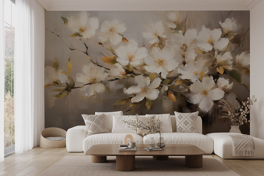 Transformați-vă spațiul într-o escapadă senină cu această uimitoare “Pictură murală de perete cu flori albe”. Imaginați-vă că vă treziți cu bujori delicați înflorind chiar pe peretele dvs. – este ca și cum ați avea o bucată dintr-o grădină japoneză de vis în casa dvs. Această pictură murală șoptește eleganță blândă, cu tonuri atenuate care sunt ușor de privit. Perfectă pentru un colț de lectură confortabil sau pentru un dormitor liniștit, aceasta invită la un sentiment de pace. Imaginați-vă sorbind ceai în timp ce aceste flori încântătoare vă reamintesc că frumusețea poate crește oriunde. Nu este doar decor; este o doză zilnică de liniște.