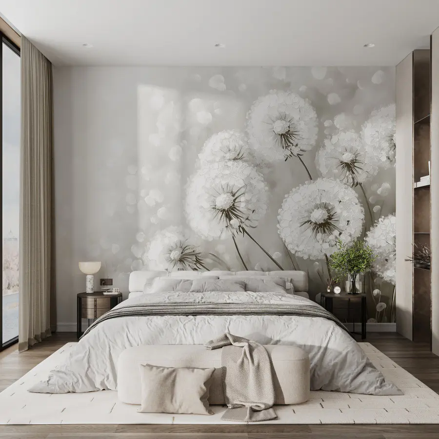 Transformați-vă spațiul cu această pictură murală încântătoare de păpădii, luminată ușor și plină de flori albe delicate. Este ca și cum ai aduce o gură de aer proaspăt în interior – perfect pentru a visa cu ochii deschiși sau pentru a sorbi ceai în timp ce privești lumea trecând. Imaginați-vă aceste capete pufoase dansând în briză, amintindu-vă de magia copilăriei, când suflarea acestor semințe era o mini aventură. Nuanțele blânde creează un vibe calmant, făcând ca orice cameră să se simtă liniștită și primitoare. Nu este doar decor; este o bucată de aer liber, care șoptește povești din natură direct pe pereții dvs. Perfect pentru toți cei care iubesc o notă de fantezie în casa lor!