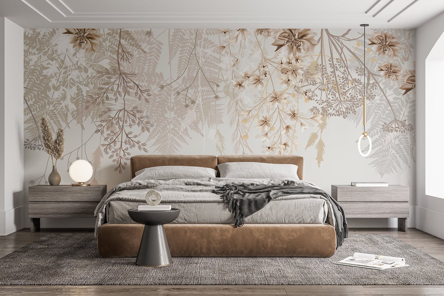 Transformați orice spațiu cu această pictură murală uimitoare cu modele florale delicate în nuanțe delicate. Imaginați-vă că intrați în cameră și sunteți întâmpinați de o cascadă blândă de flori și frunze, ca și cum natura ar fi decis să valseze direct în casa dvs. Are un aer de acuarelă de vis – gândiți-vă la o după-amiază relaxantă petrecută rătăcind printr-o grădină secretă. Perfectă pentru un colț confortabil sau o zonă de luat masa luminoasă, această pictură murală adaugă o notă de eleganță fără a fi prea exagerată. În plus, cui nu-i place un pic de farmec floral pentru a-și înveseli ziua? Este ca și cum ai aduce un buchet proaspăt în casă, fără să se ofilească!