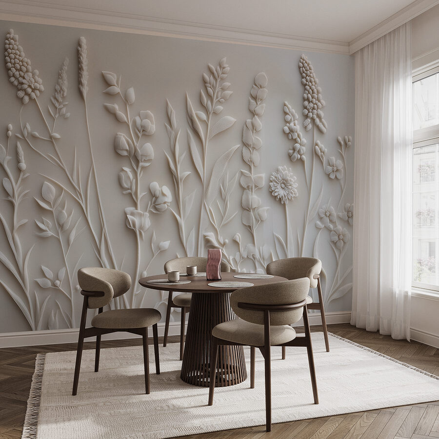 Transformați-vă spațiul cu această pictură murală uimitoare cu un design delicat de flori albe și frunze. Imaginați-vă că intrați într-o cameră plină de atingeri delicate ale naturii, unde fiecare privire pare o gură de aer proaspăt. Această pictură murală nu stă pur și simplu acolo; vă invită înăuntru, aproape șoptindu-vă povești despre grădini senine și după-amieze leneșe. Perfectă pentru a crea o oază de calm în casa ta, este ca și cum ai avea o grădină secretă chiar pe perete. Fie că vă preparați cafeaua sau vă relaxați cu o carte, acest design adaugă un aer șic, inspirat din natură, care face fiecare moment puțin mai dulce. Este simplu, dar frapant – un fundal frumos care poate stârni bucurie prin eleganța sa fără efort. Cine nu ar dori să se înconjoare cu așa ceva?