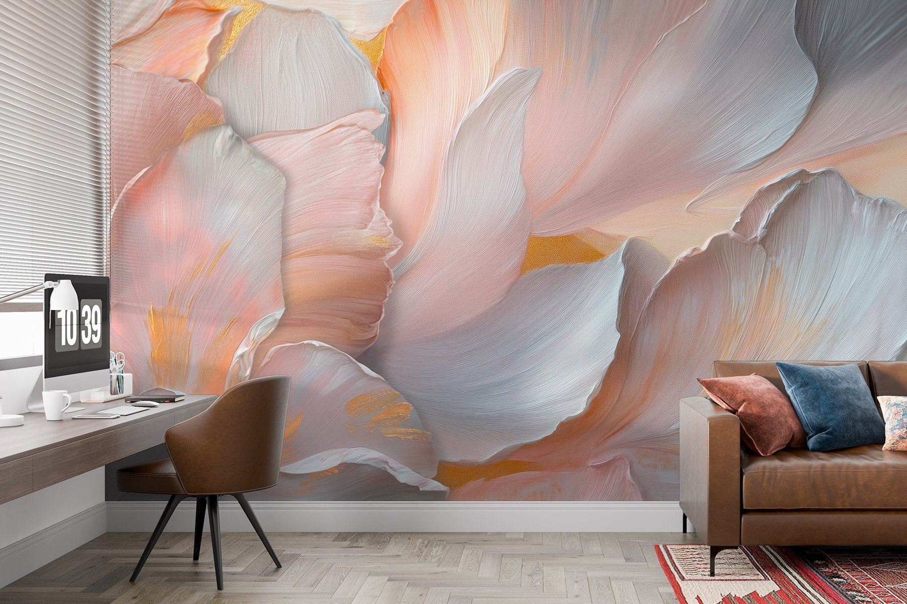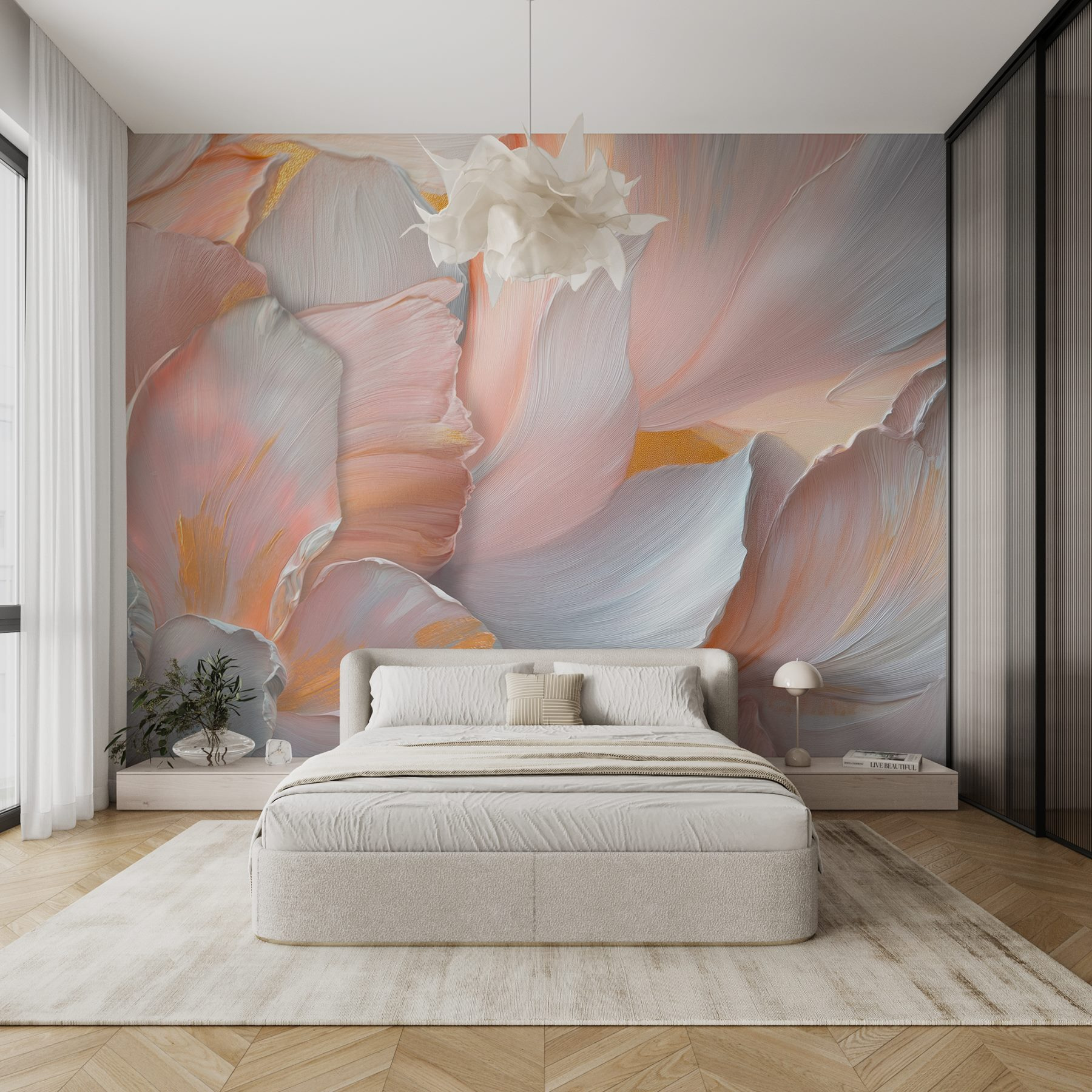 Transformați orice cameră într-o oază de seninătate cu pictura murală “Delicate Petals in Soft Hues”. Cine nu și-ar dori să se simtă ca și cum ar trăi într-o țară a minunilor florale? Culorile blânde invită la o atmosferă confortabilă, perfectă pentru după-amiezele leneșe cu o carte sau pentru discuțiile animate la cafea. Imaginați-vă sorbind ceai în timp ce vă cufundați în petalele moi și visătoare, fiecare lovitură șoptindu-vă o poveste despre frumusețea naturii. Este ca și cum ai avea o grădină care nu se ofilește niciodată. Perfectă pentru un colțișor liniștit sau un hol plin de viață – este o sursă de conversație, o evadare, o bucățică de liniște care abia așteaptă să vă împodobească pereții.