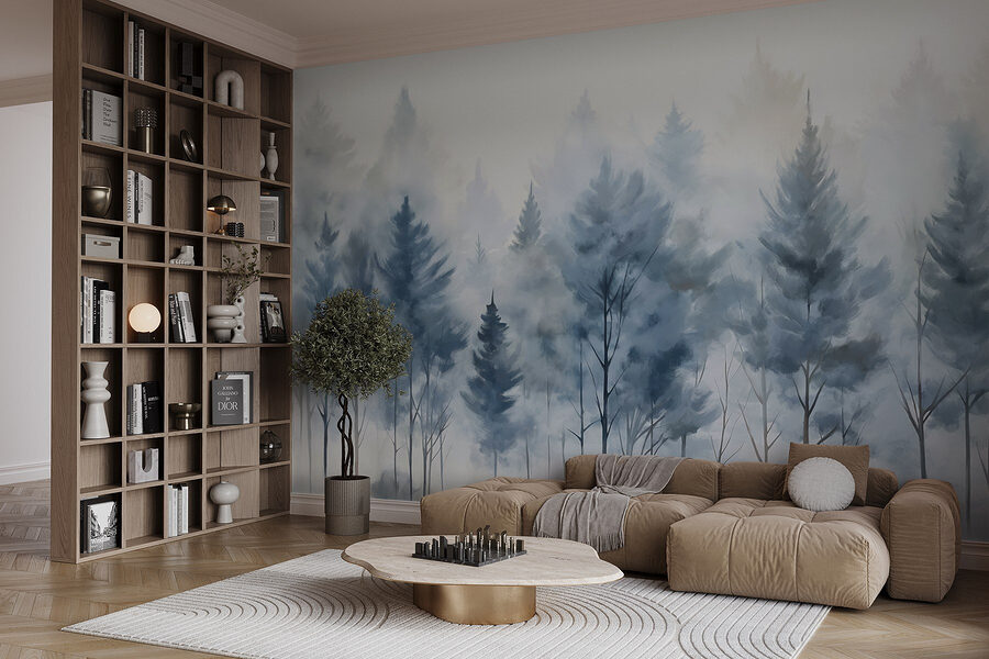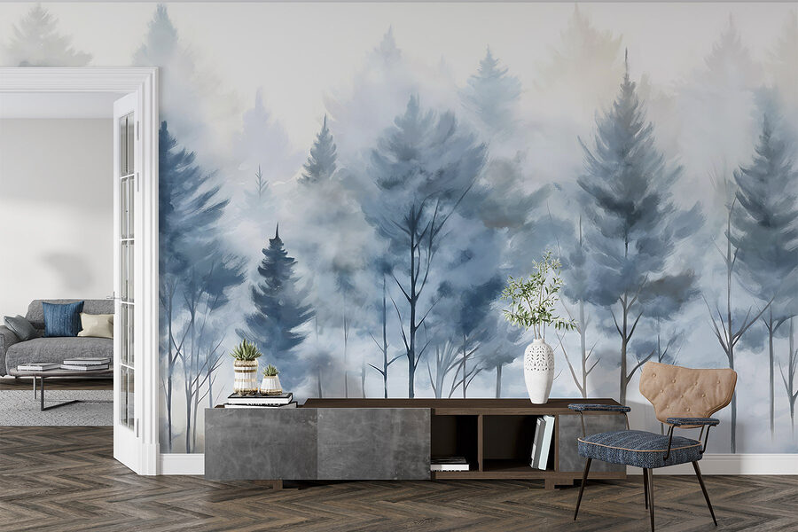 Transformați un perete simplu într-o evadare de vis cu această pictură murală “Grup de copaci în ceață”. Imaginați-vă că intrați într-un spațiu confortabil care se simte ca o plimbare printr-o pădure liniștită – ceața se învârte ușor în jurul copacilor înalți și maiestuoși. Albastrul blând și griul creează o atmosferă calmă, ceea ce o face perfectă pentru camera de zi, dormitor sau chiar un colț de lectură. Gândiți-vă doar: sorbiți o cafea în timp ce priviți acești copaci, simțind că natura vă învăluie într-o îmbrățișare reconfortantă. Este ca și cum ai aduce aerul liber în casă, fără să te îngrijorezi de ploaie sau de insecte. Așadar, de ce să nu adăugați o notă de magie casei dumneavoastră?