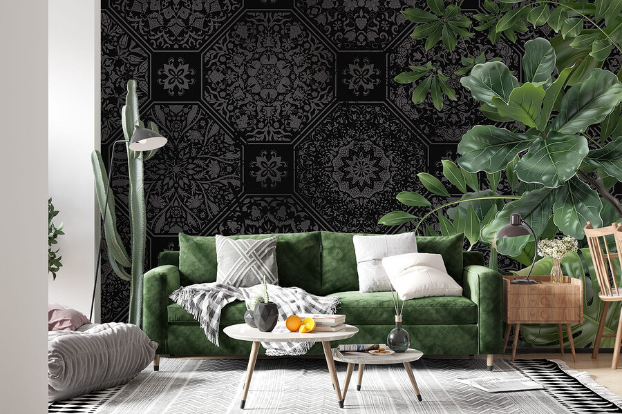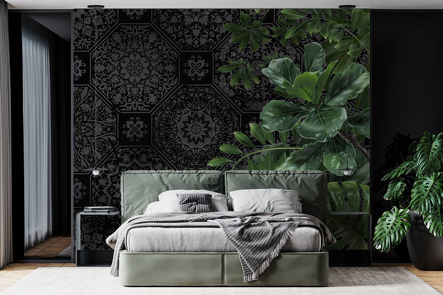 Transformați-vă spațiul cu acest tapet negru și gri uimitor cu frunze verzi luxuriante. Imaginați-vă că intrați într-o cameră care se simte ca o evadare tropicală! Modelele geometrice complexe oferă un fundal fantastic, în timp ce frunzele vibrante aduc un strop de viață și energie. Vă veți simți ca și cum ați fi înconjurat de natură – cu excepția țânțarilor, desigur! Perfectă pentru un colțișor de lectură confortabil sau pentru un perete decorativ, această pictură murală îmbină fără efort eleganța cu o notă de sălbăticie. Sunteți pregătiți pentru niște vibrații de stil serioase? Pereții tăi îți vor mulțumi!
