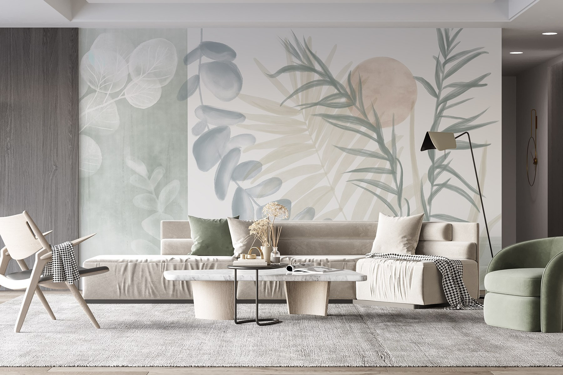 Transformați-vă spațiul cu această pictură murală de vis “Frunze pastelate inspirate din natură”. Imaginați-vă că vă treziți cu verdele blând și albastrul moale care se învârt ca o briză ușoară într-o duminică dimineața. Este ca și cum ați aduce o grădină senină în casă – perfectă pentru un colț de lectură confortabil sau un fundal calm pentru activitățile de la biroul de acasă. Frunzele delicate trag cu ochiul jucăuș, invitând la o gură de aer proaspăt fără insectele enervante. Serios, cine nu vrea să se simtă ca și cum ar fi pășit într-o oază capricioasă? Este vorba despre acele vibrații pașnice – iubitorii de natură o vor adora!