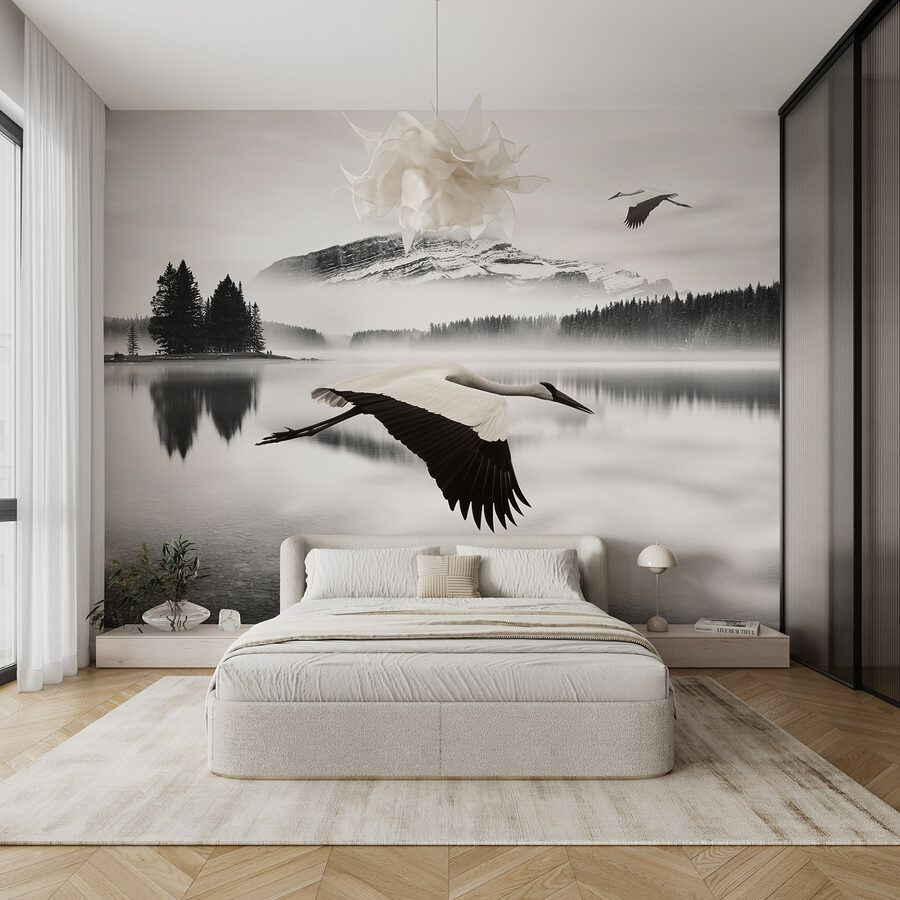 Transformați-vă spațiul cu această pictură murală uluitoare, “Pasăre zburând deasupra apei”. Imaginați-vă un peisaj senin în care o cocoră grațioasă alunecă printr-un lac cețos, radiind liniște. Este ca și cum ai aduce o bucată de natură în interior – nu este nevoie de pantofi plini de noroi sau spray pentru insecte! Perfectă pentru acel perete gol care imploră să aibă personalitate, această pictură murală aduce calm în ziua ta agitată.