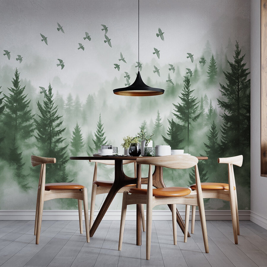 Transformați orice spațiu cu pictura murală încântătoare “Birds Flying Over a Forest”. Imaginați-vă că vă treziți în fiecare zi într-o pădure cețoasă senină, unde fiecare detaliu șoptește pace. Aceste păsări grațioase care planează deasupra vor adăuga o notă de magie și libertate pereților dvs. Este perfect pentru camere confortabile sau saloane pline de viață – oriunde ar fi nevoie de un strop din farmecul naturii. În plus, cine nu și-ar dori să se simtă ca într-un refugiu de vis în pădure de fiecare dată când intră? Ușor de aplicat și cu siguranță de invidiat, verdele subtil și vibrația liniștitoare a acestei picturi murale s-ar putea să vă facă să uitați de lumea exterioară. Ideală pentru cei care visează cu ochii deschiși și pentru iubitorii de natură deopotrivă!